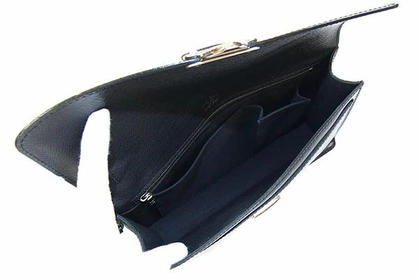 | 状態 | 外側:底縁の反りによる型崩れあり。フチ周りに薄スレあり。正面金具上レザーに強いシワあり。 内側:スレ、薄汚れあり。 金具:小キズ、スレ、クスミあり。 |