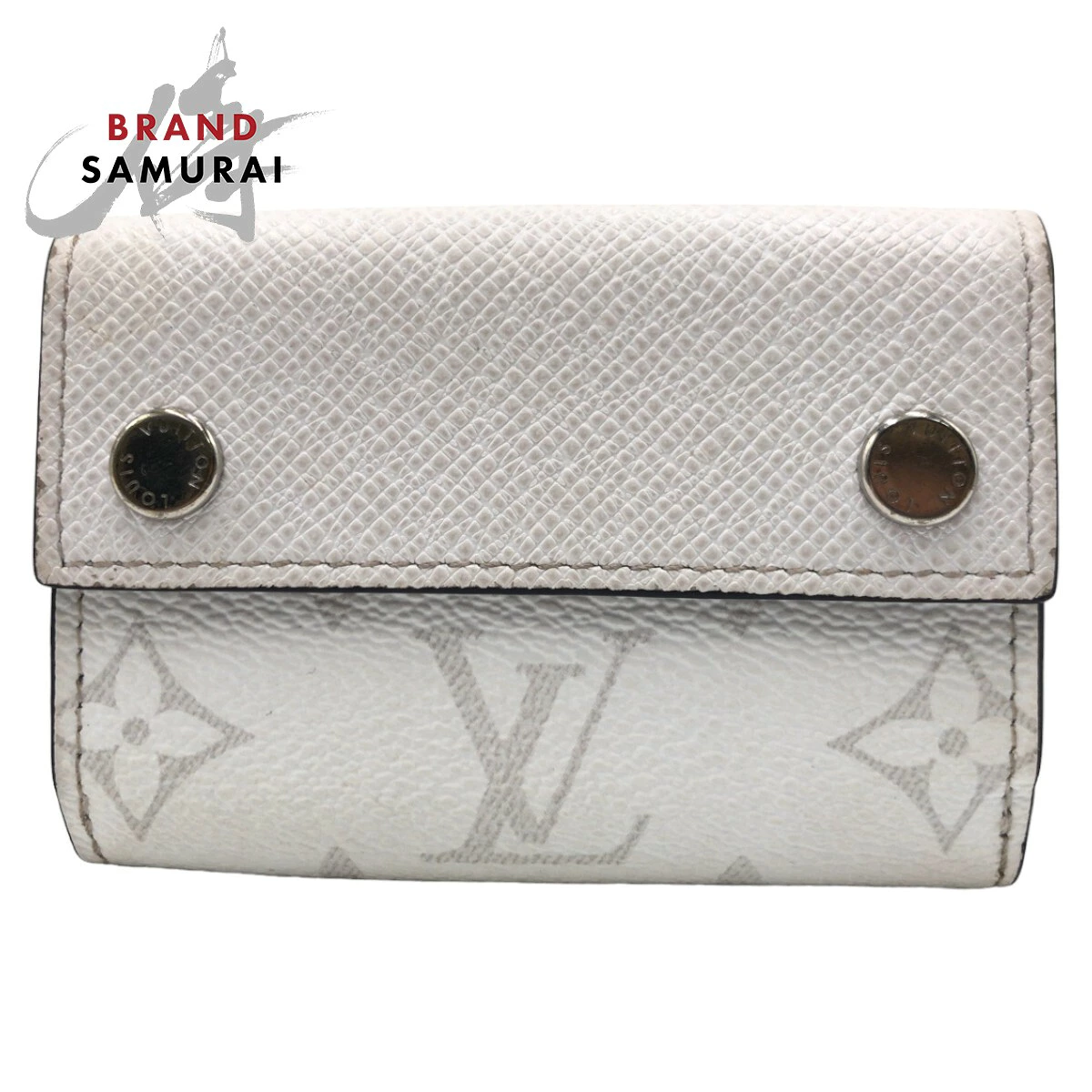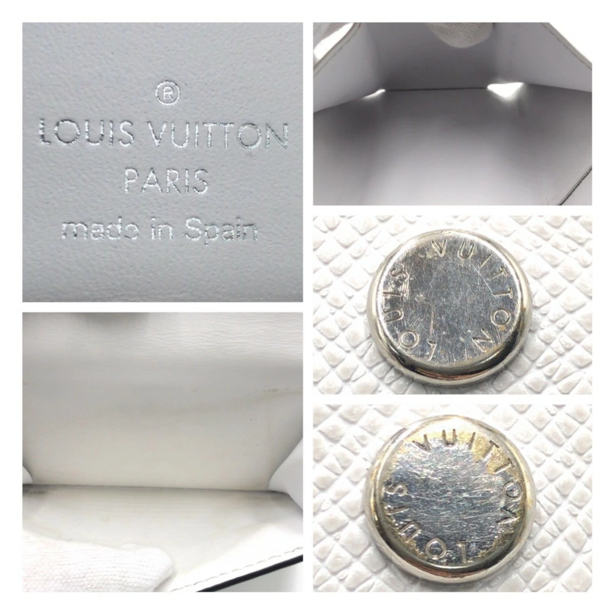 Pre-owned LOUIS VUITTON Taiga Lama Discovery Compact Wallet, unisex, Optic White with silver hardware, PVC, M30899, Women's, 506311.