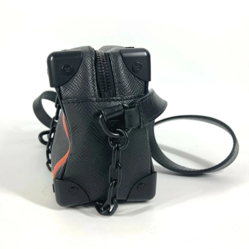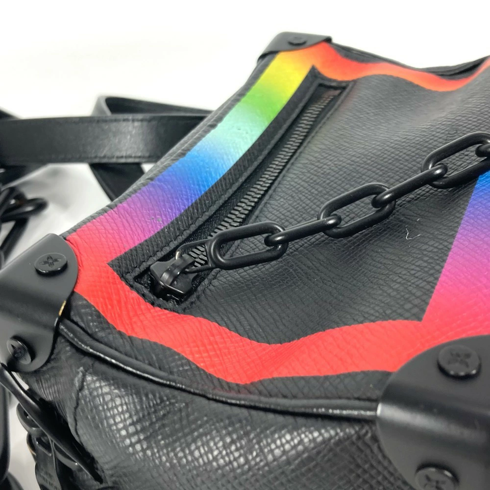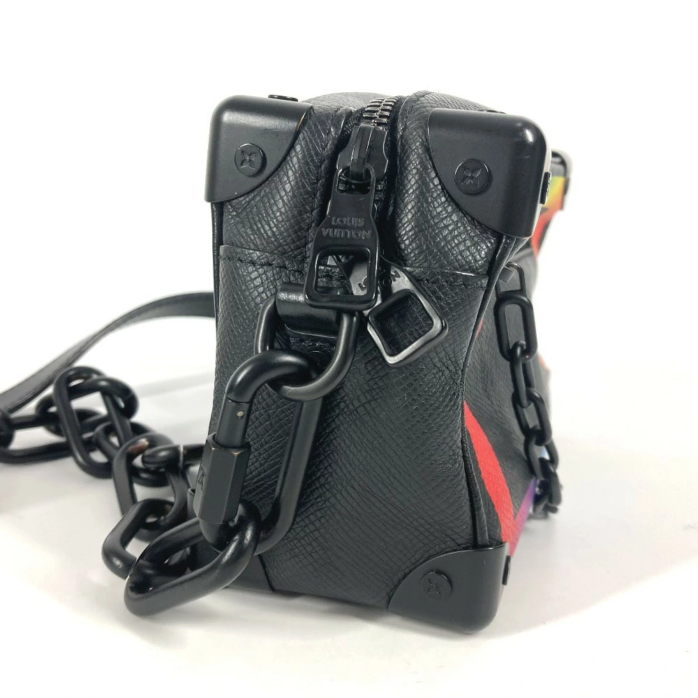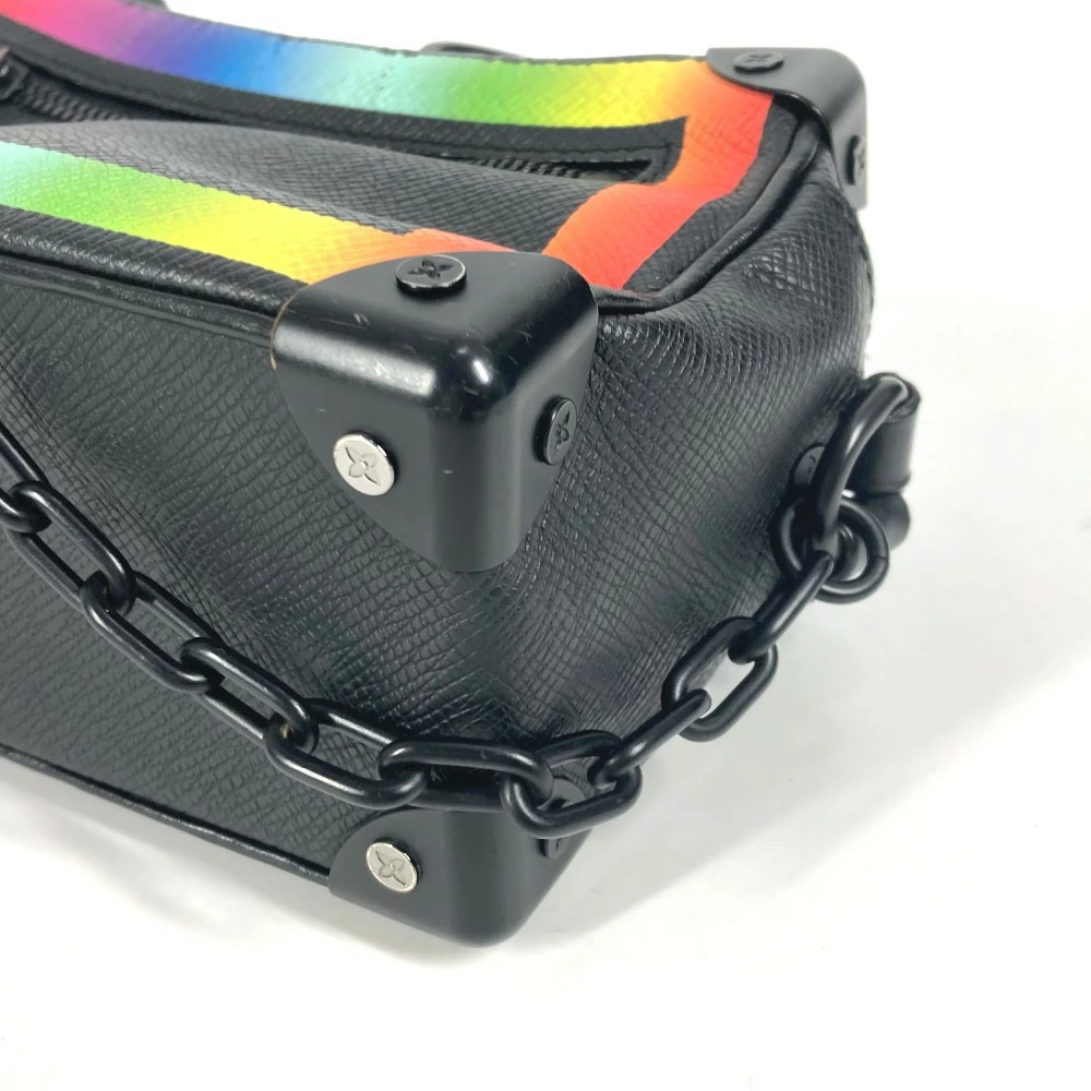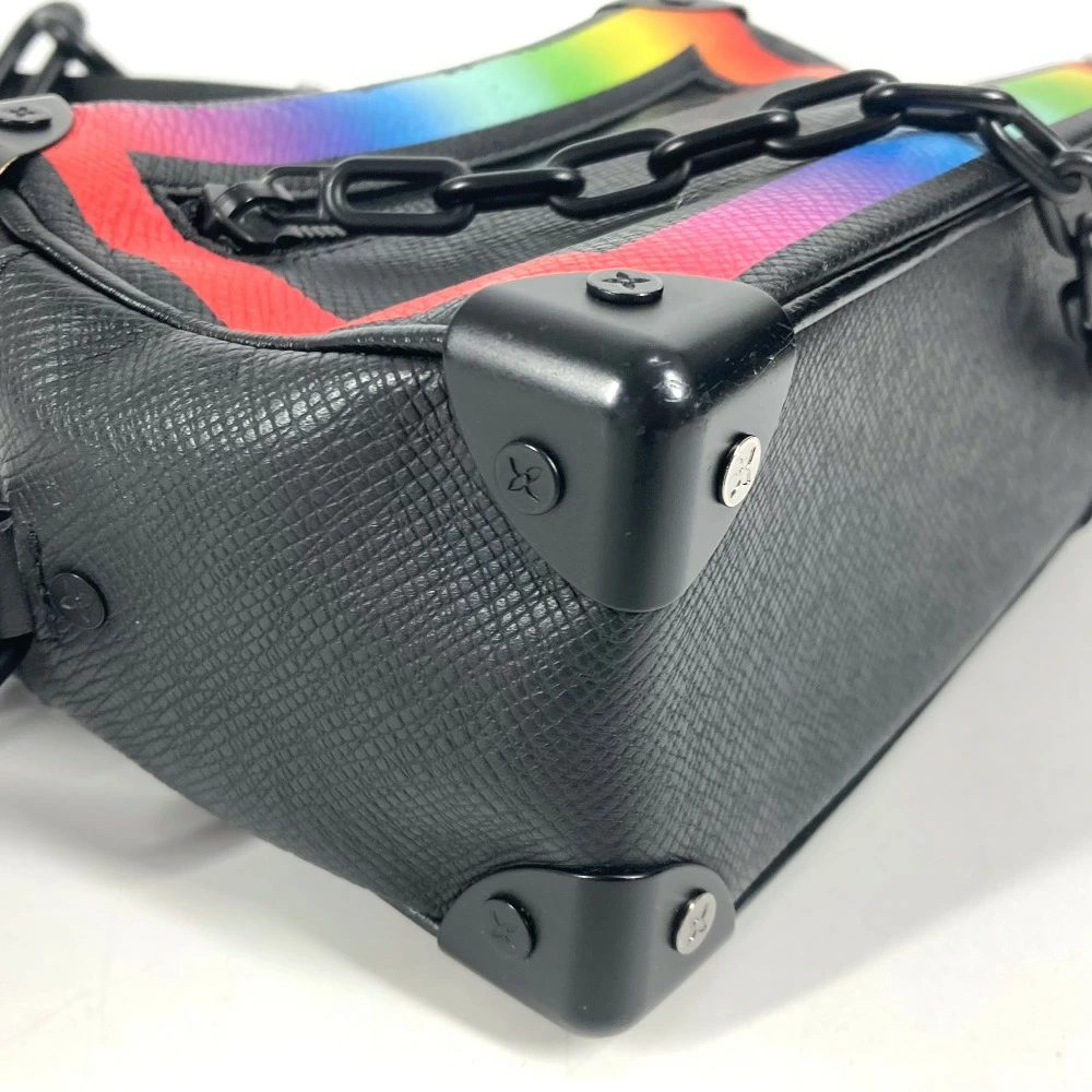 Pre-owned Louis Vuitton Taiga Rainbow Mini Soft Trunk M30351, a crossbody pochette shoulder bag in Taiga leather, unisex, in black.