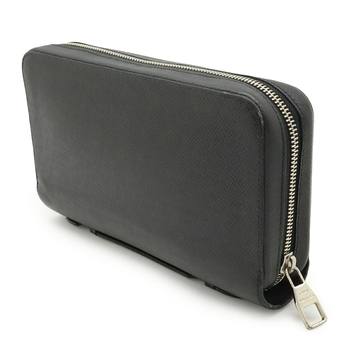 Pre-owned Louis Vuitton Taiga Zippy XL Round Zip Long Wallet, Travel Case, and Second Bag in Noir and Black, M44275