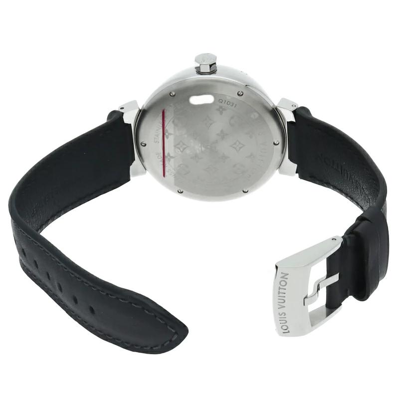 | ルイ・ヴィトンの旅のスタイルをデザインした「タンブール」。こちらは中央のVモチーフの黄色が映え、裏蓋にはモノグラムフラワーなどが施されるなど、こだわりと遊び心が見られます。タンブールとは太鼓を意味しておりケースが太鼓のように丸くふっくらした腕時計です。 |