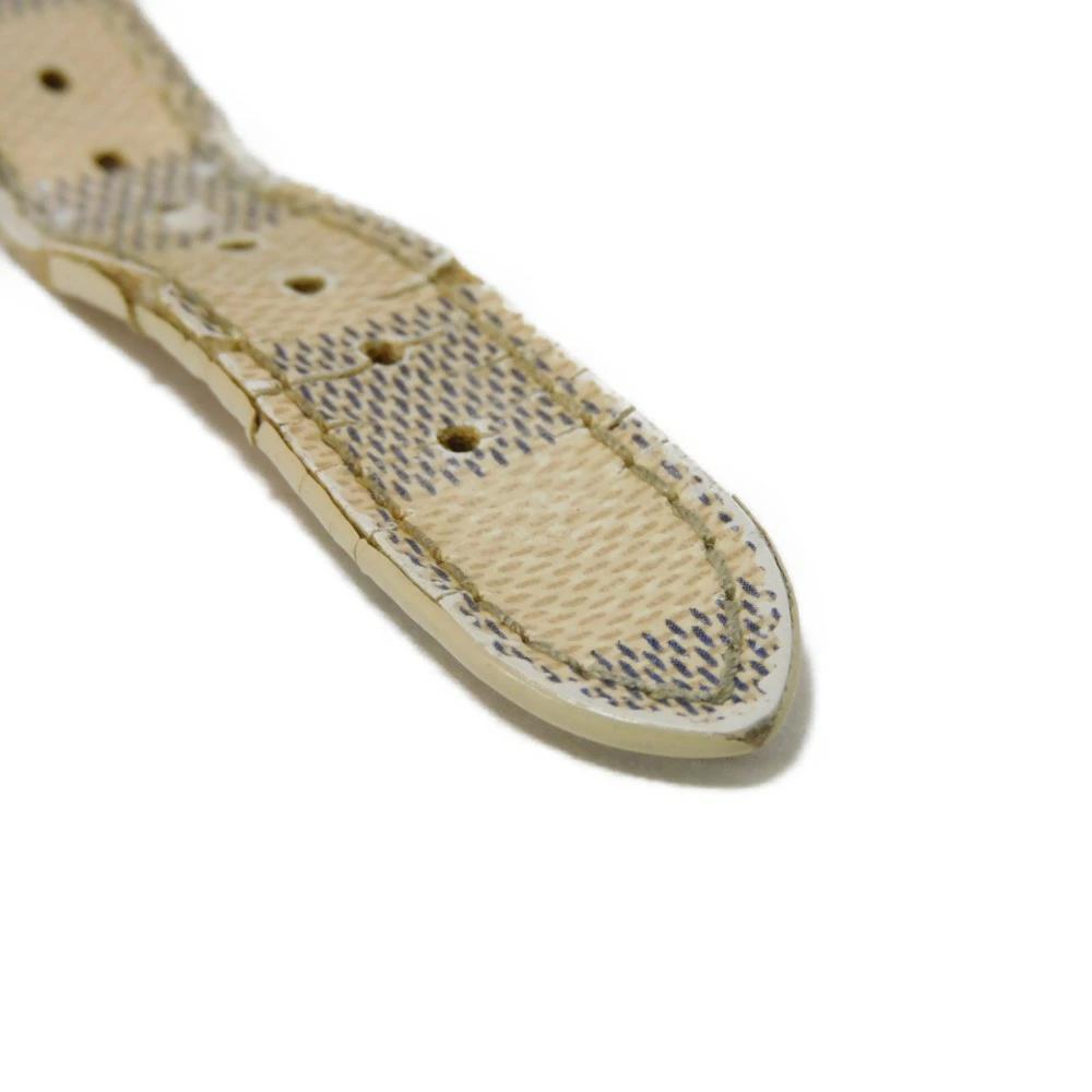 | 外箱、内箱、保証書(冊子、保証書の記入日:2018.10)、取扱説明書、革ベルト(ダミエ アズール柄、使用感があります) |