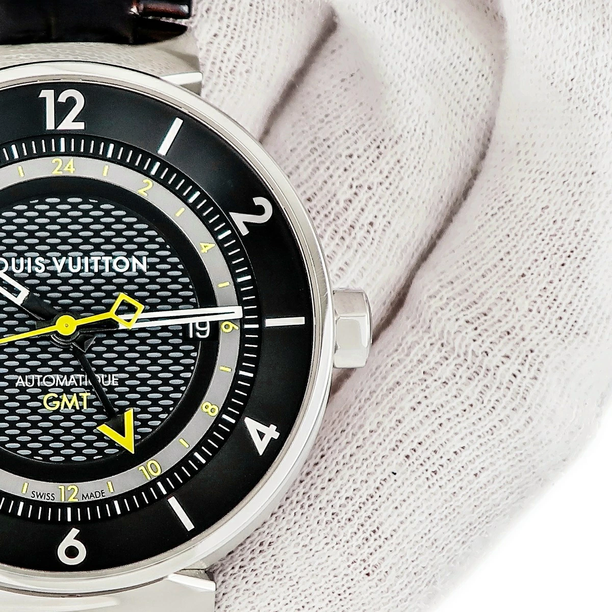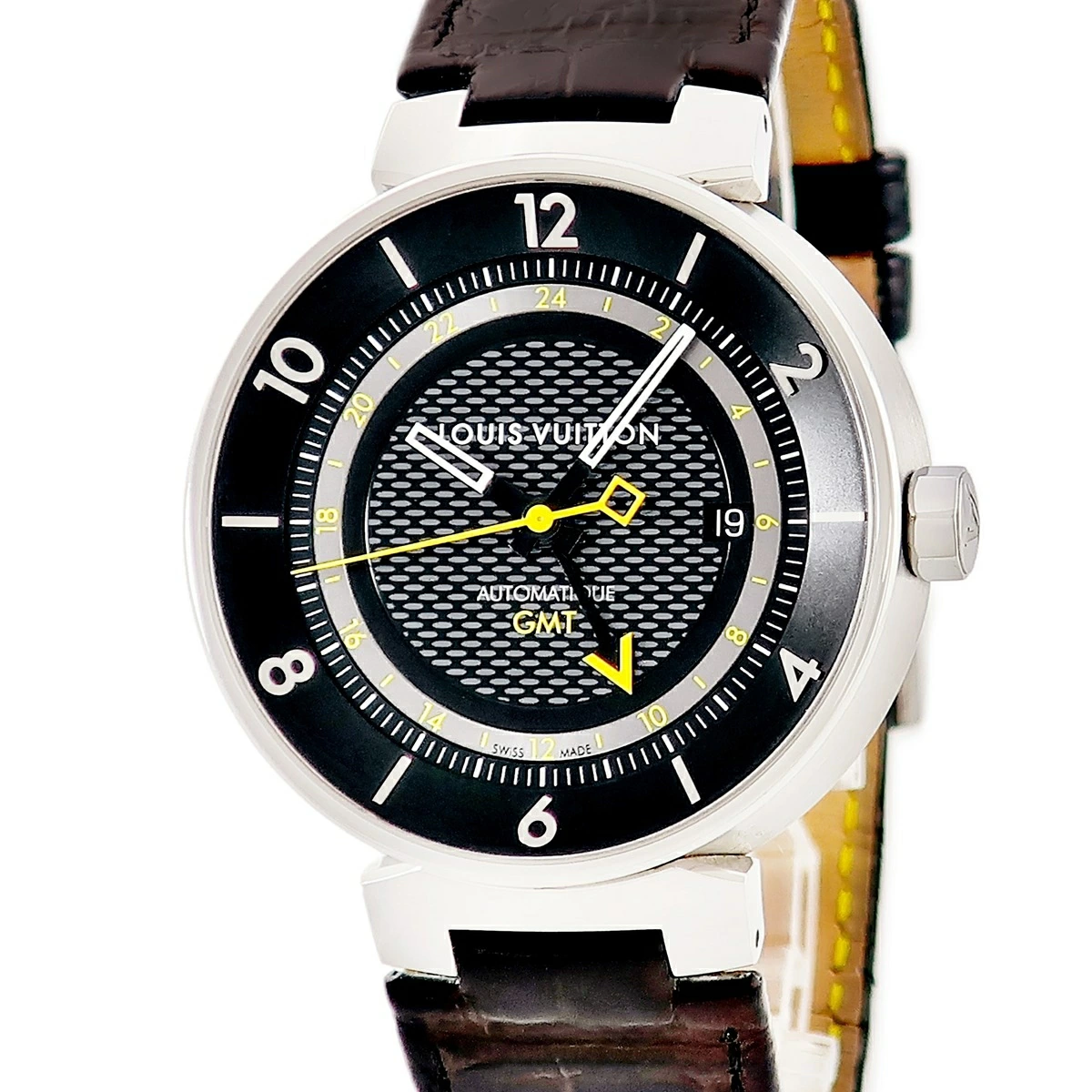 ルイヴィトン LOUIS VUITTON タンブール ムーン GMT Q8D30Z ブラック イエロー バー アラビア デイト メンズ 腕時計自動巻き ブラック 【中古】【店頭受取不可】