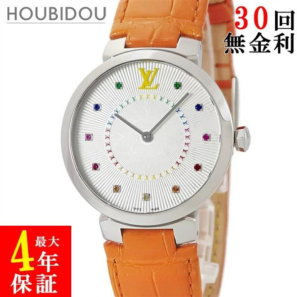 ルイヴィトン LOUIS VUITTON タンブール スリム MM レインボー QA159Z モノグラム ギヨシェ カラフル メンズ レディース 腕時計クオーツ ホワイト 【中古】【店頭受取不可】