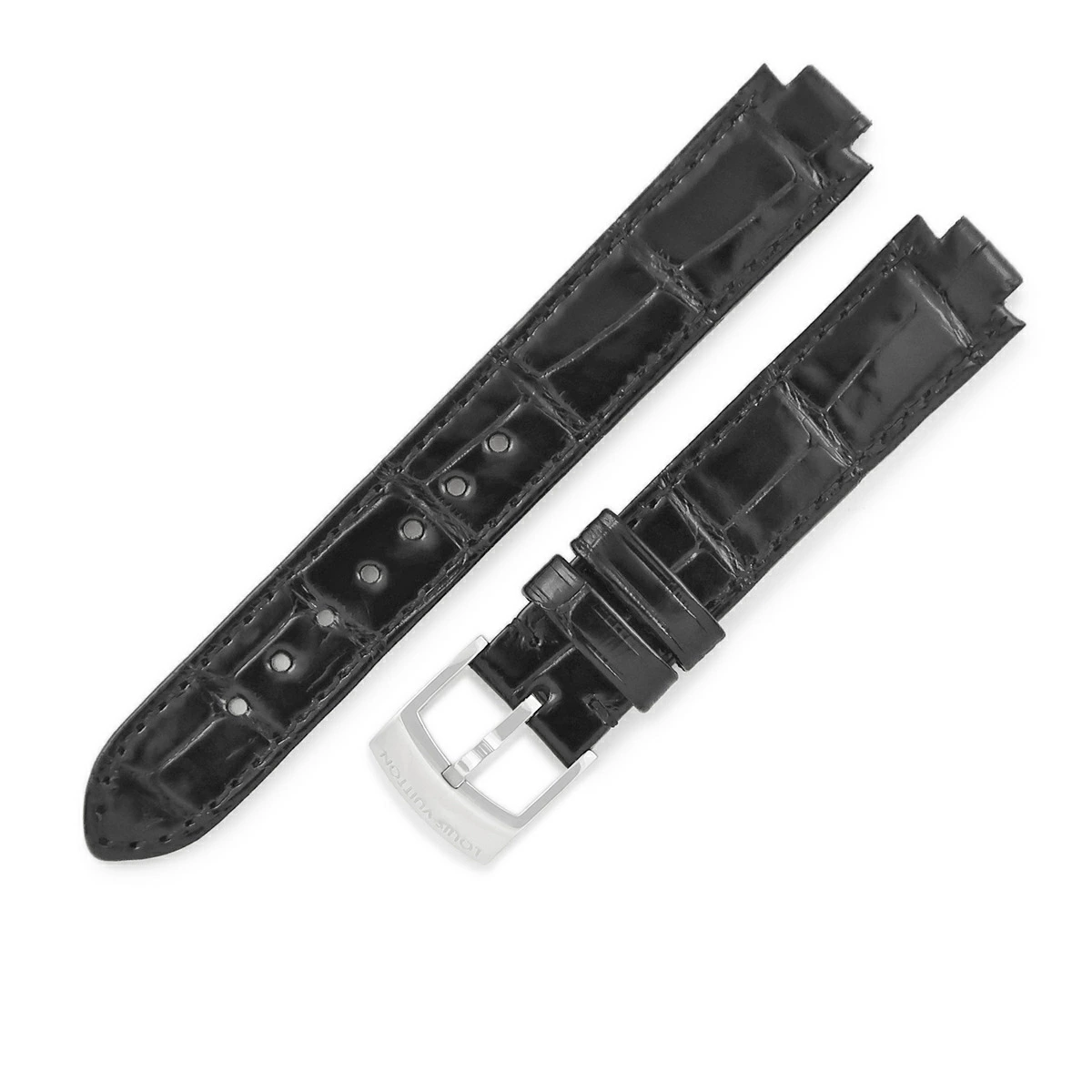 ルイヴィトン LOUIS VUITTON 腕時計パーツ 純正 タンブール用 クロコバンド ブラック 替え ベルト 純正SS製尾錠付き 21mm ブラック 黒 艶 R15187 レディース定番 人気 美品 【中古】