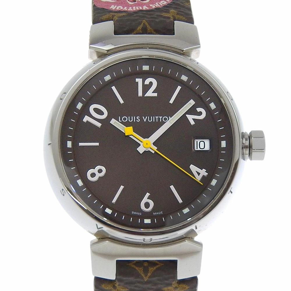 Pre-owned Louis Vuitton Tambour Watch Q1311, Stainless Steel and Leather Quartz Movement, Analog Display, Brown Dial, Unisex, Condition: A