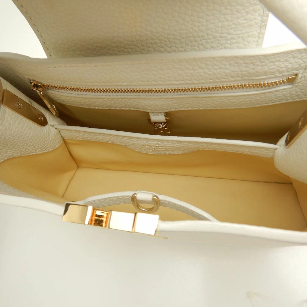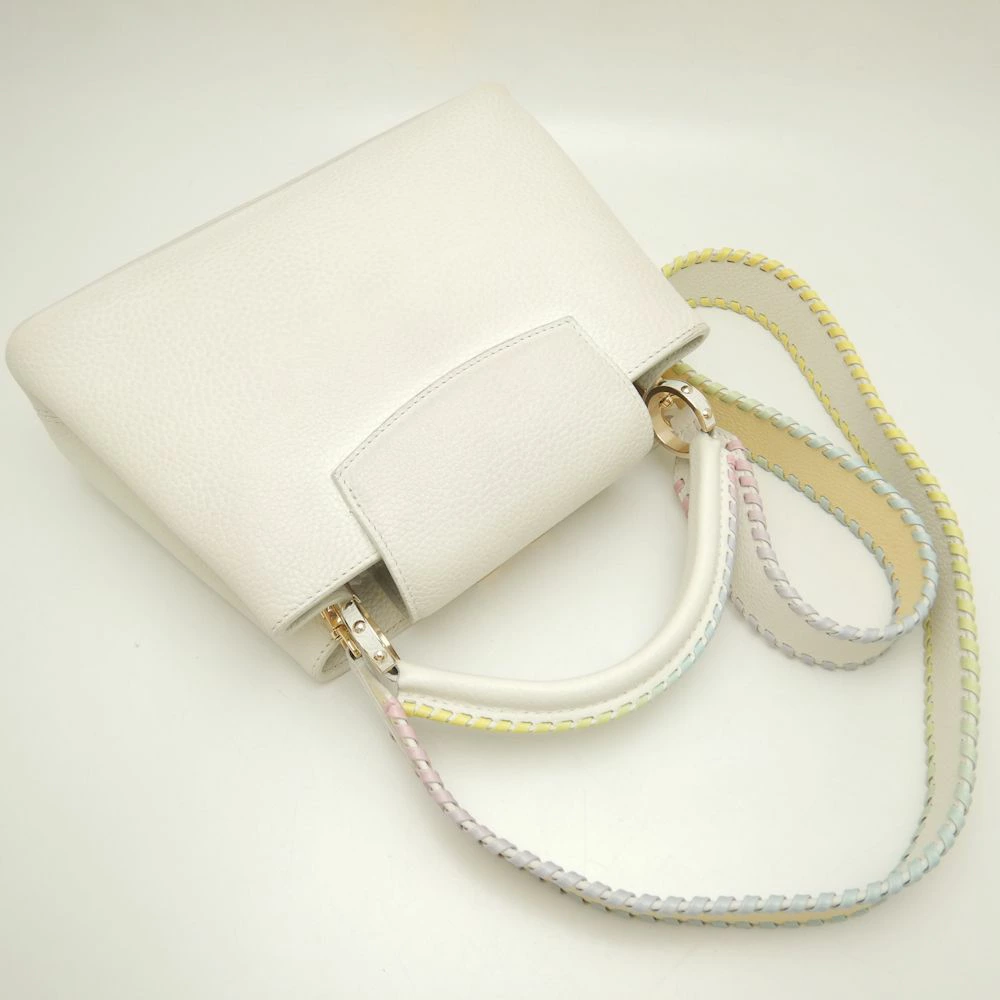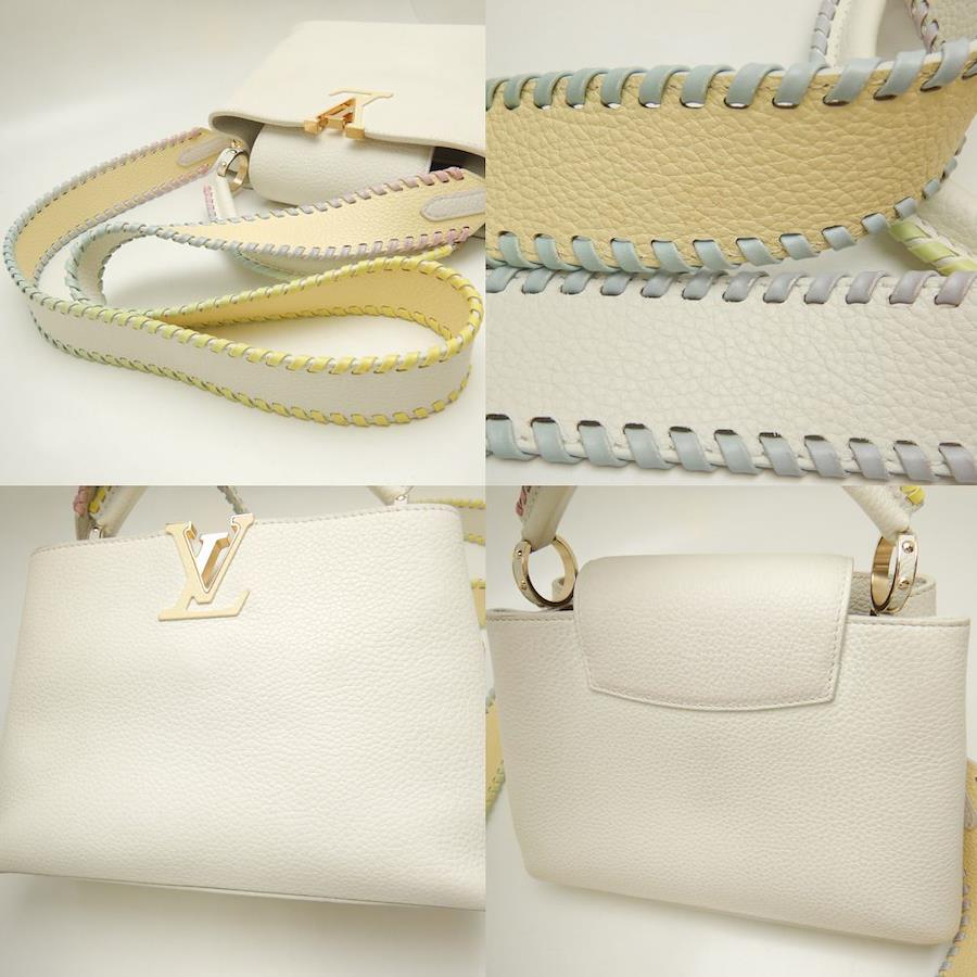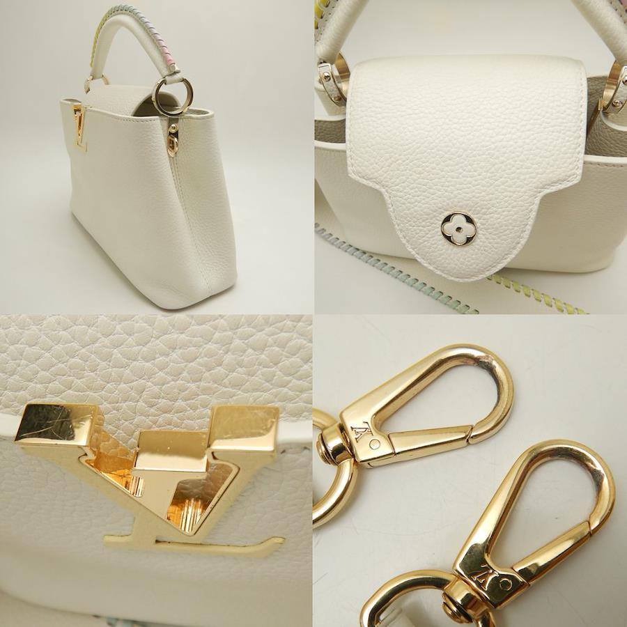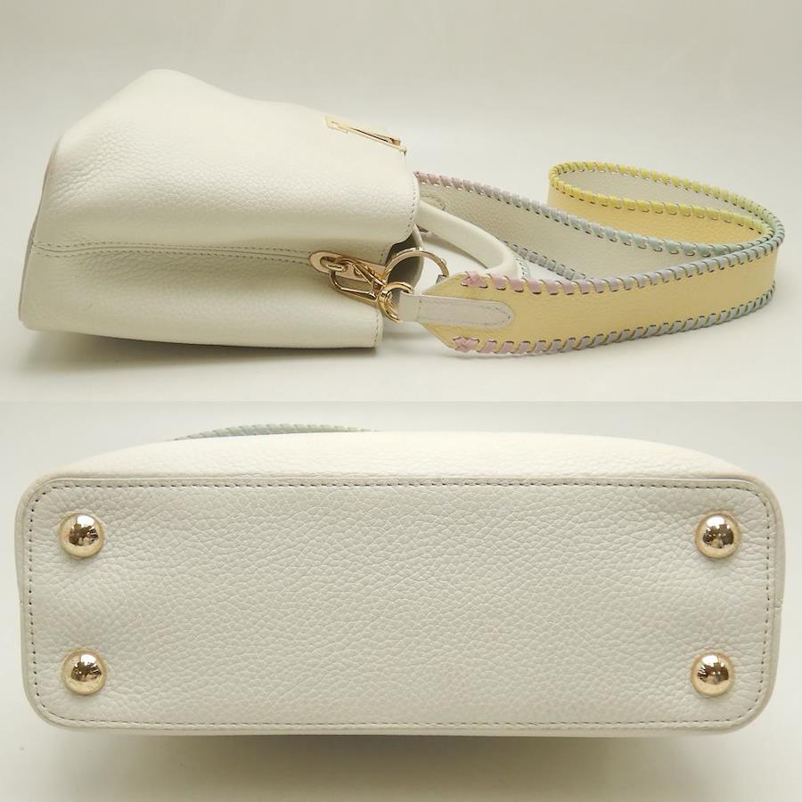 | 商品説明 | | 取扱店舗 | ミドリヤ川越本店 | | 状態 | 中古ABランク | | 型番 | M57941 | | 素材 | トリヨンレザー | | 色 | スノー / レインボー / ゴールド金具 | | サイズ | W27.5cm×H18cm×D9cm