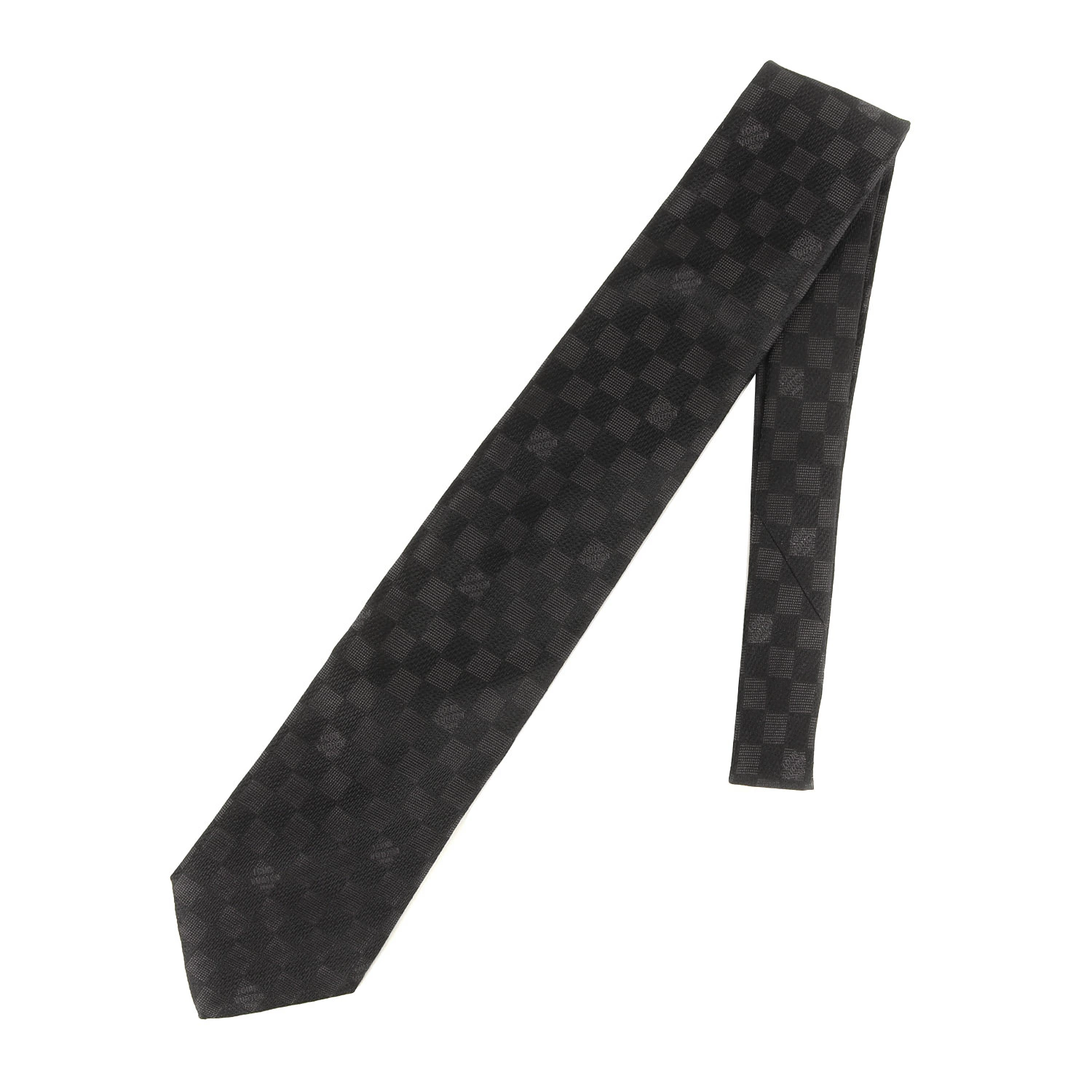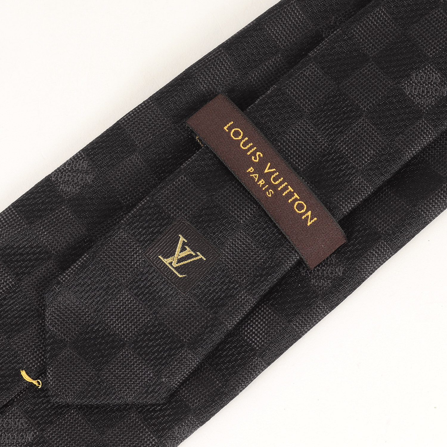Pre-owned Louis Vuitton tie, Damier jacquard silk tie, Cravate, black, made in Italy, suitable for formal and business occasions. [Men's] [K4617]
