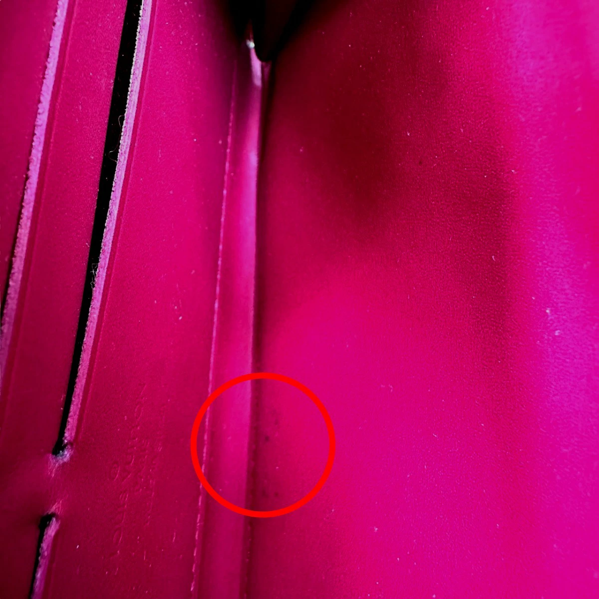 | 外側 | ランク:AB 表面:小キズ、汚れ、スレ、ベタ付き 切り替えし部分:スレ 表面中央に5mm程度の色移りがあります 小さなキズやスレ、角にハゲがあります 全体的に少しベタつきがあります。 |