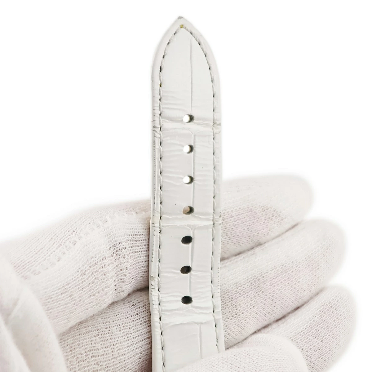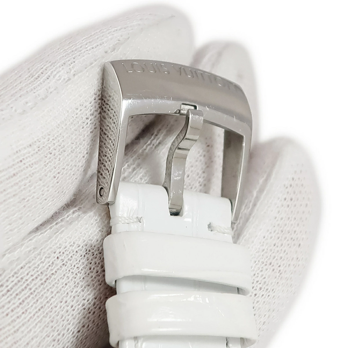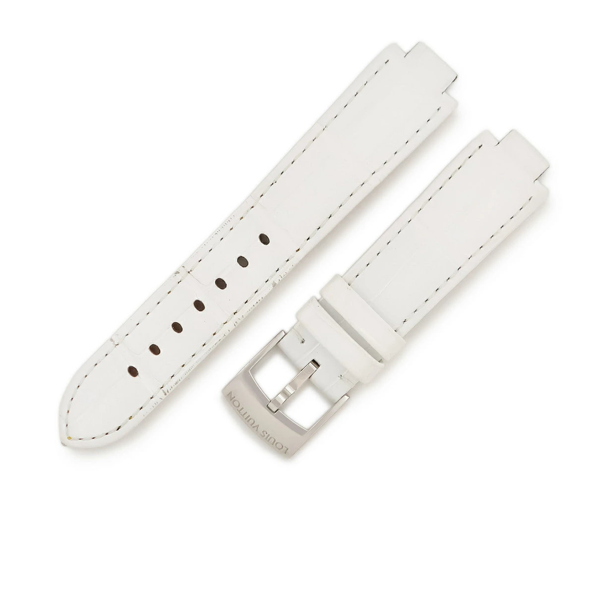 Pre-owned Louis Vuitton watch part, genuine crocodile band, stainless steel, white, replacement strap, with genuine stainless steel buckle, 18mm, white, shiny finish.