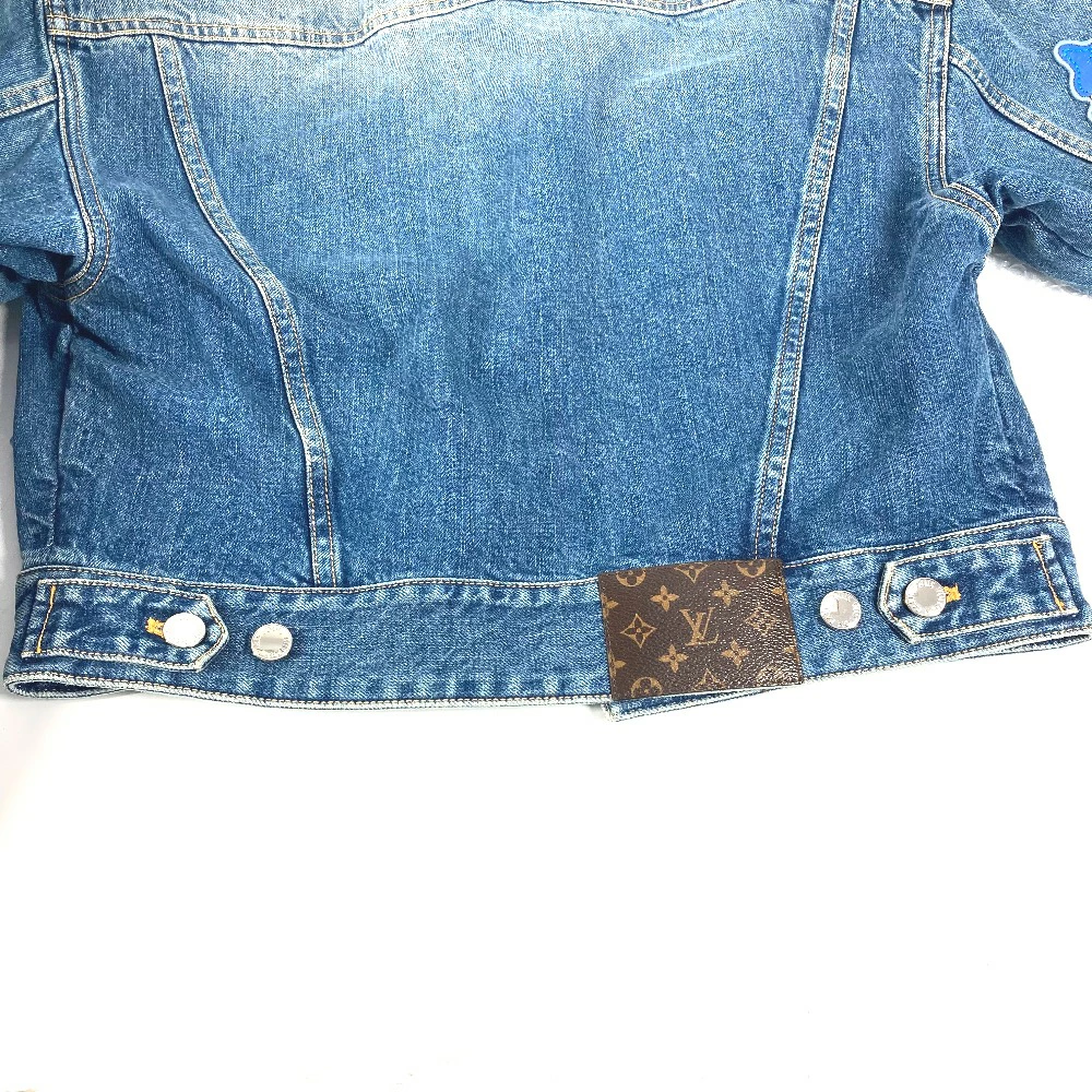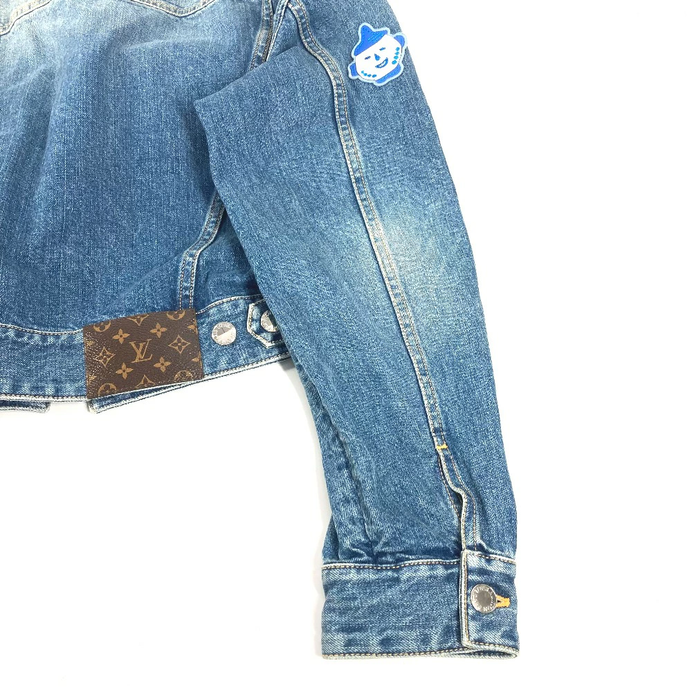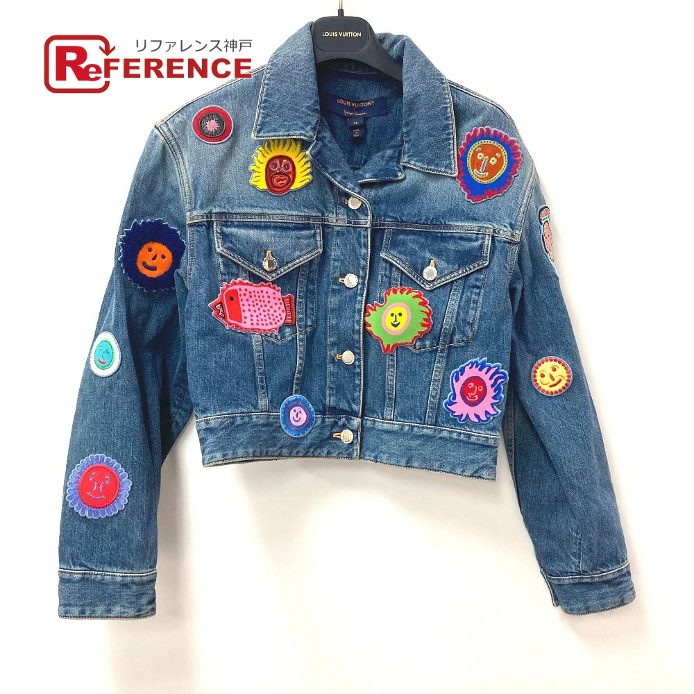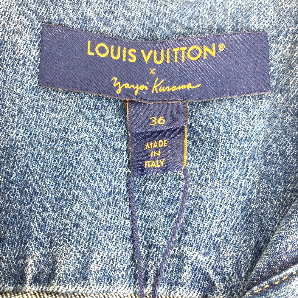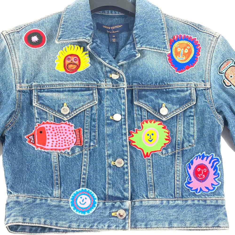 Pre-owned Louis Vuitton Yayoi Kusama collaboration patch denim jacket, long-sleeved cotton jacket, blue, for women.