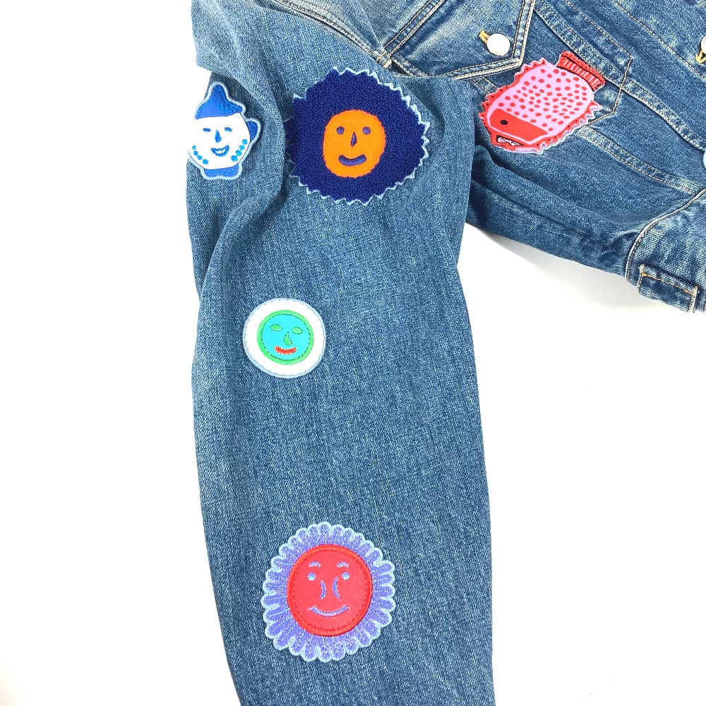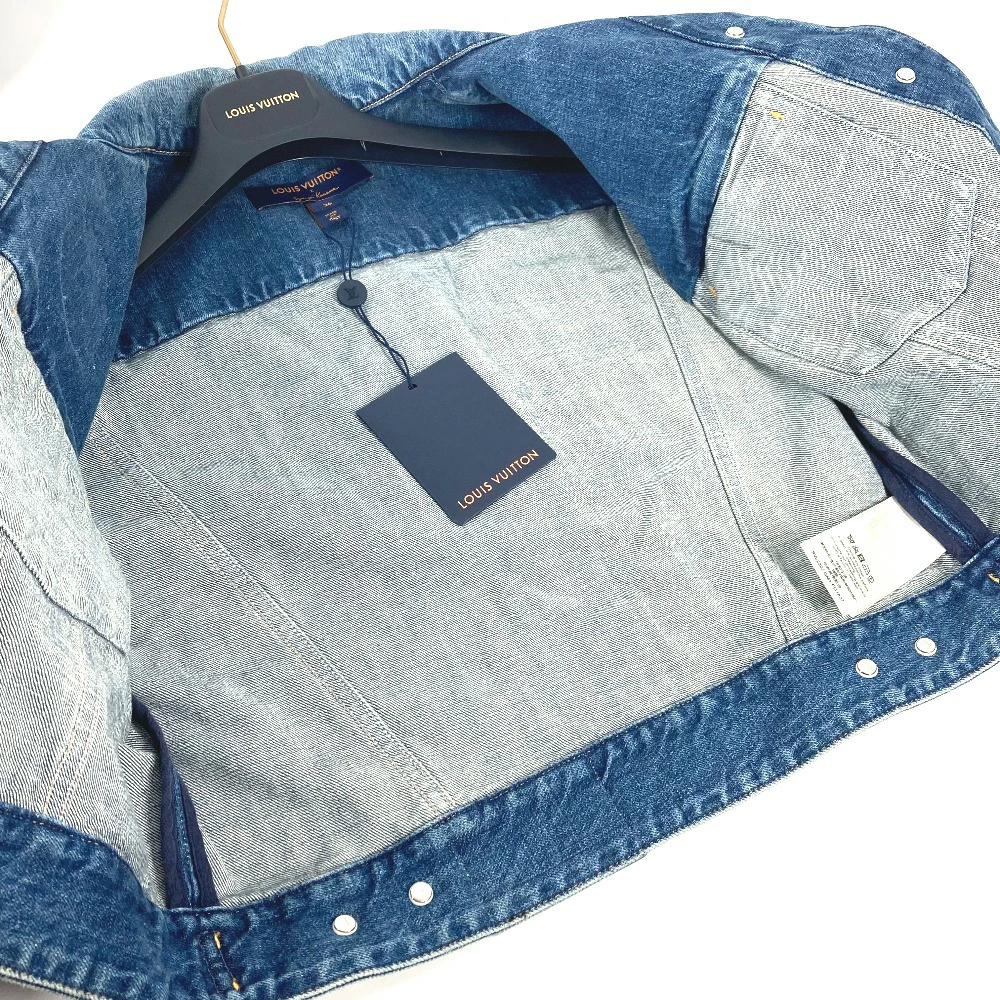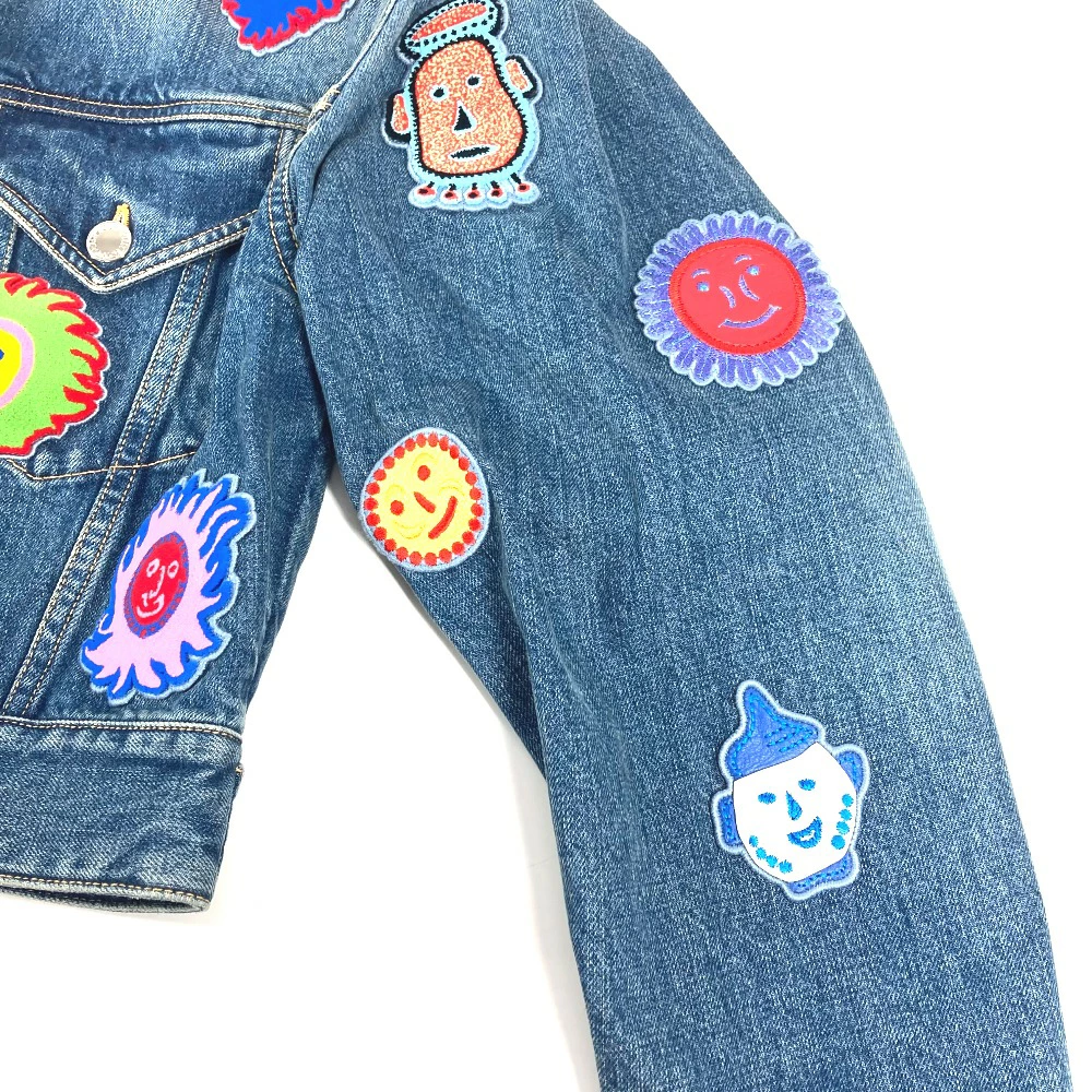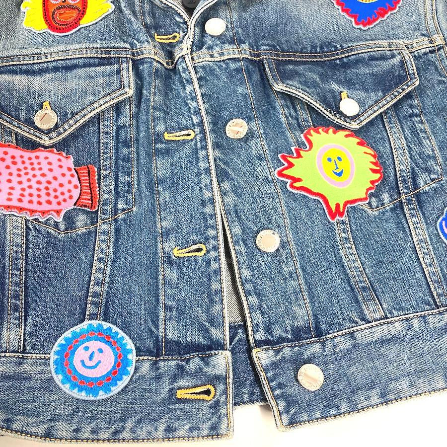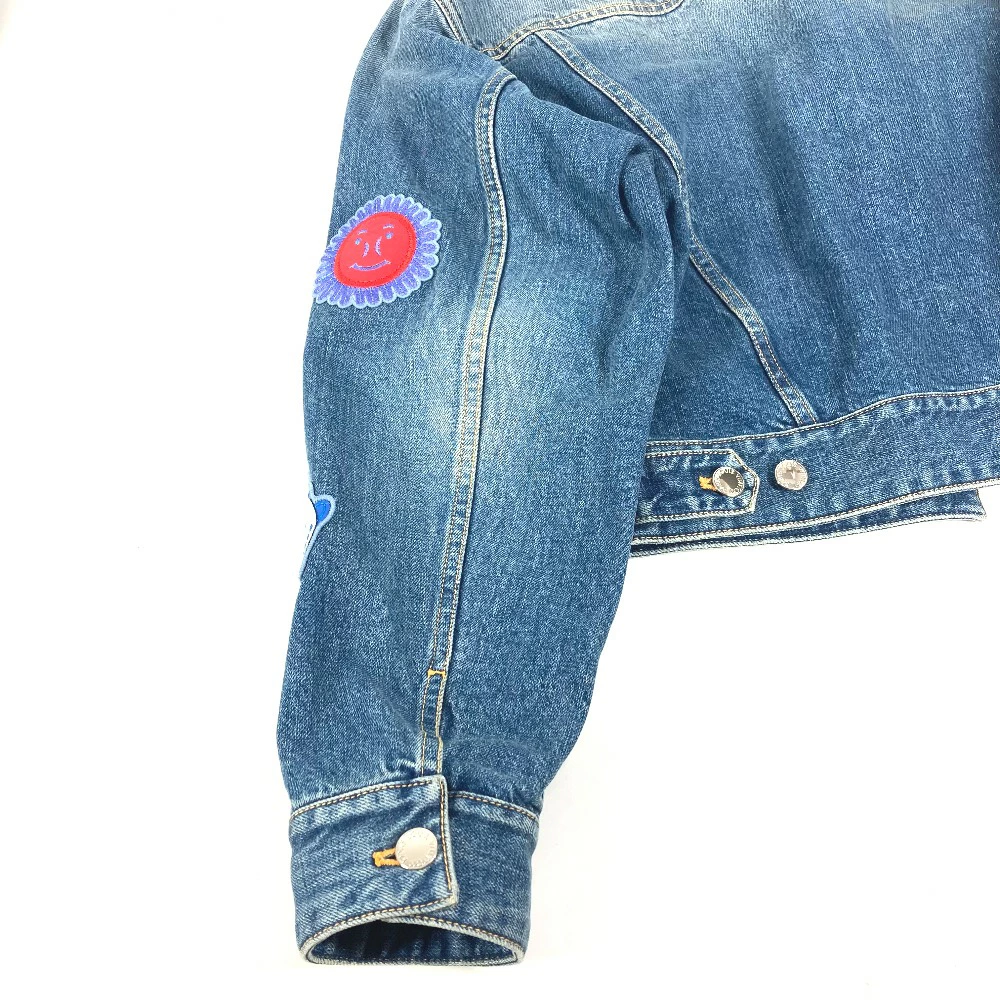 Pre-owned Louis Vuitton Yayoi Kusama collaboration patch denim jacket, long-sleeved cotton jacket, blue, for women.