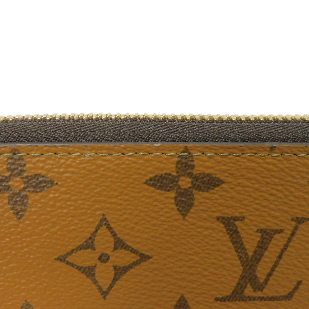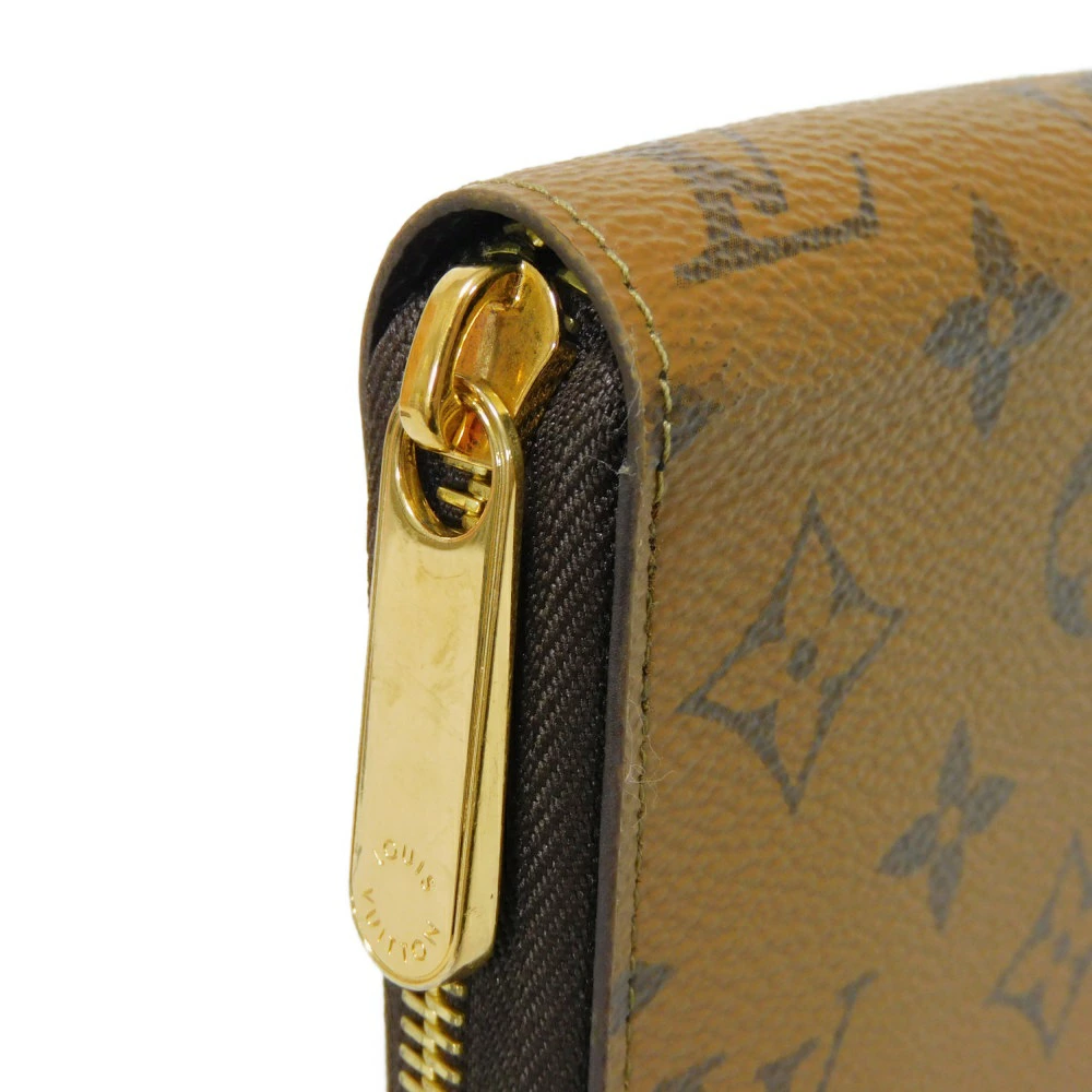 | ルイヴィトンのモノグラムリバースキャンバスにブラックのライニングカラーを組み合わせた「ジッピー・ウォレット」新しく4枚分のカード用スロットが追加された、ラウンドファスナー式長財布です。 |