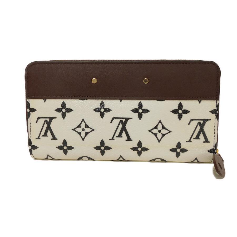 | モノグラムホワイトキャンバスにLVサークルがあしらわれたトリミングとライニングカラーを組み合わせた「ジッピーウォレット」ラウンドファスナー式長財布です。 |