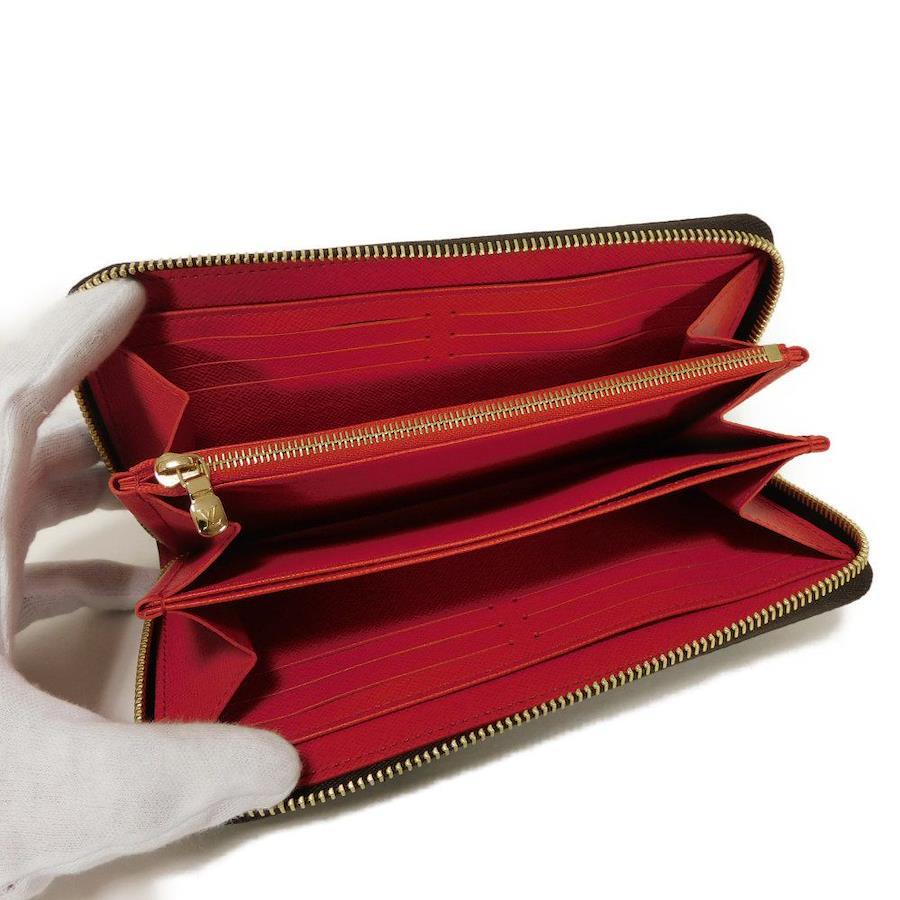| ルイヴィトンのモノグラムキャンバスにライニングカラーを組み合わせた「ジッピーウォレット」。新しく4枚分のカード用スロットを追加した、ラウンドファスナー式長財布です。 |