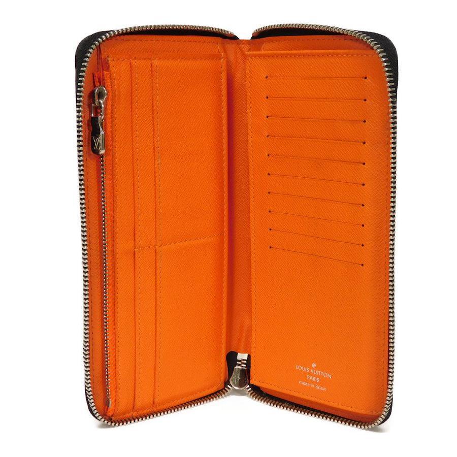 ルイヴィトンのタイガレザーとモノグラムキャンバスを組み合わせた「ジッピーウォレット・ヴェルティカル」。新しくカード用スロットが追加された、ラウンドファスナー式長財布です。
