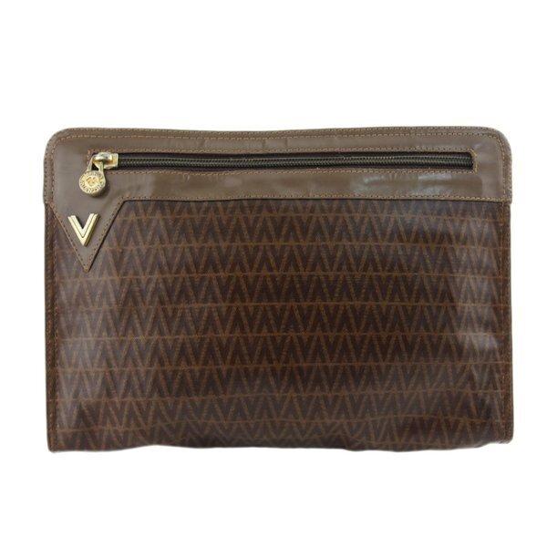Pre-owned Mario Valentino clutch bag with V mark in brown, beige, gold, and silver.