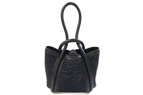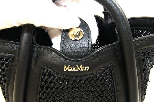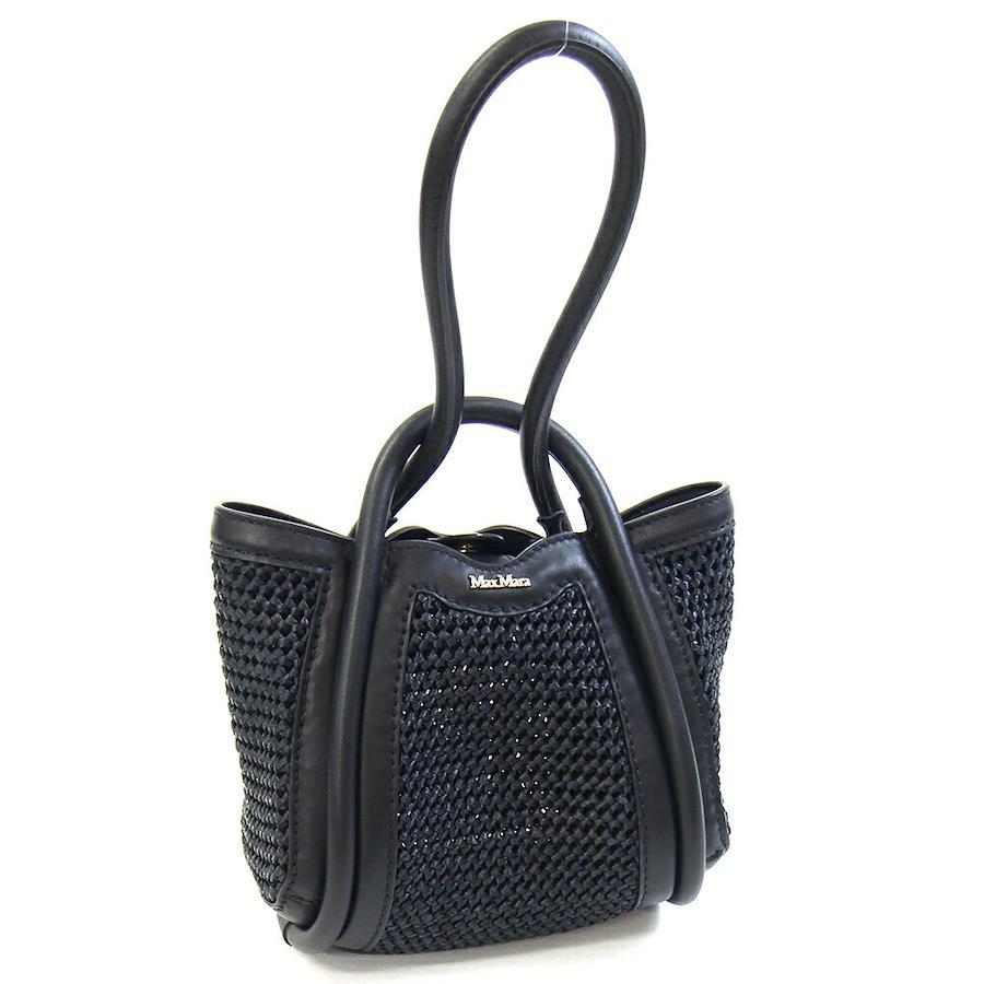 マックスマーラハンドバッグマリン14-51-12321ブラックレーヨンレザー中古ミニバッグ編み込みラフィアロゴレディースMaxMara