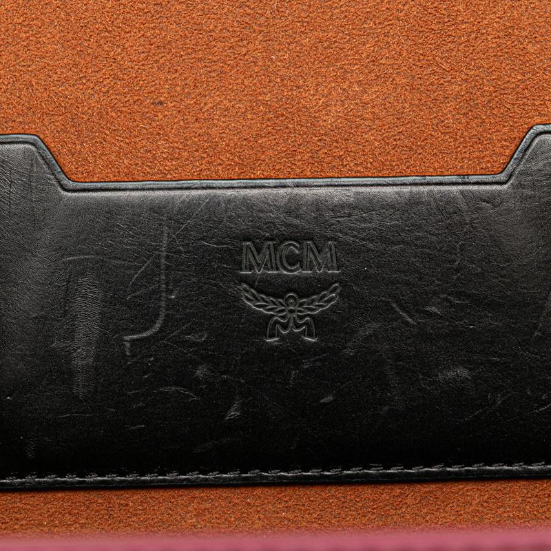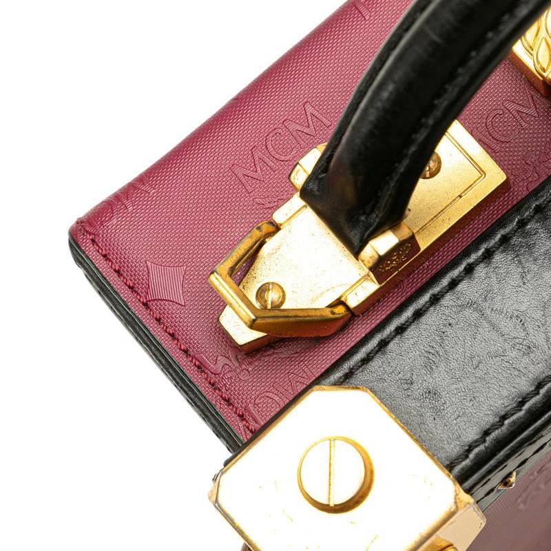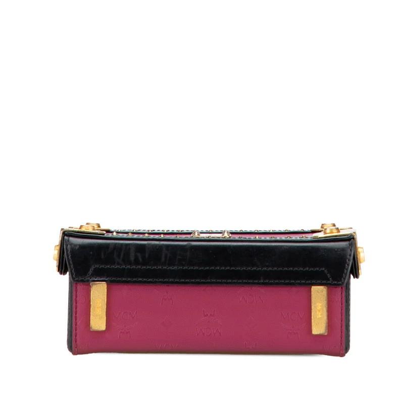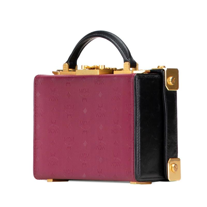 Pre-owned MCM Visetos Logogram Trunk Bag, 2-Way Shoulder Bag in Purple and Black Leather. Women's.