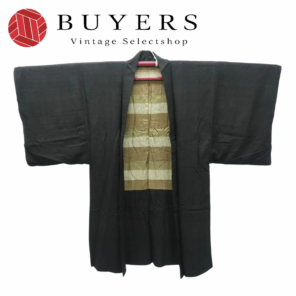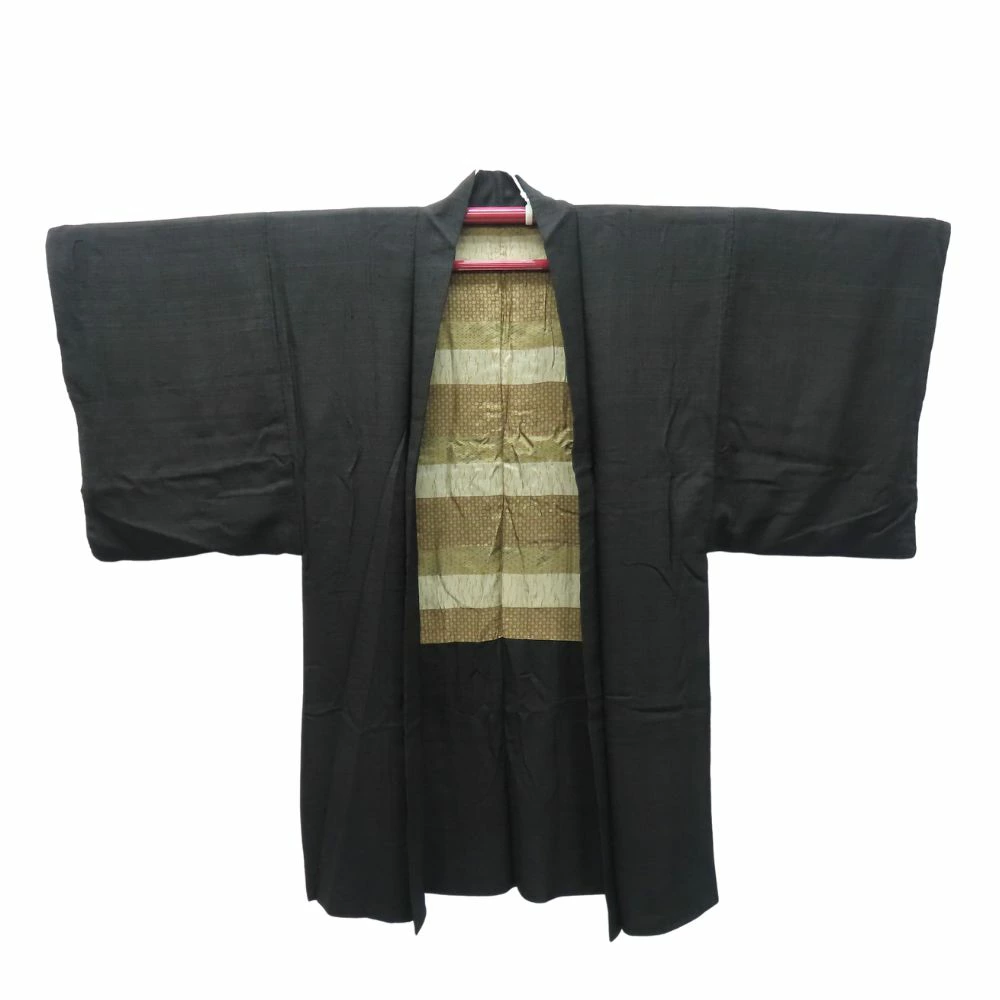 品名【中古】 羽織 男物 紬 正絹 黒 モダン シンプル メンズ 男性