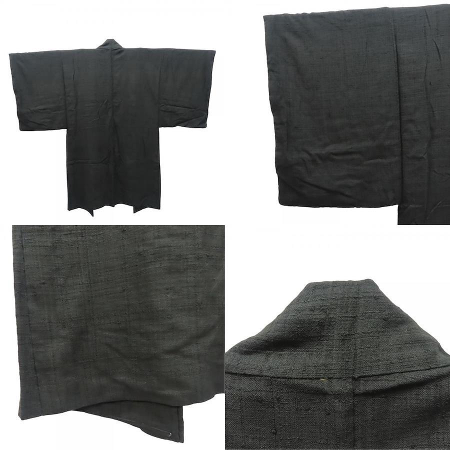 [Pre-owned] Men's Tsumugi Silk Haori (Haori) - Black, Modern and Simple, Japanese Kimono