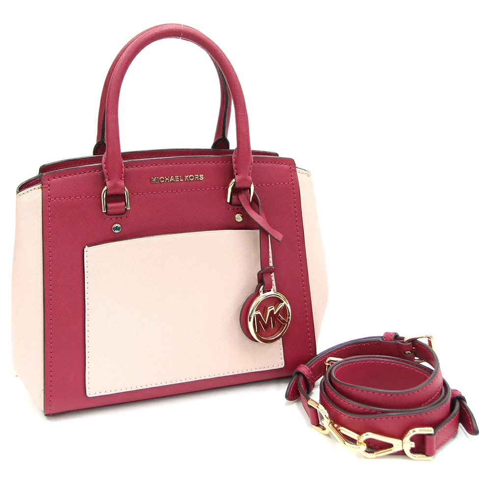 Pre-owned Michael Kors 2-Way Handbag 30F9GP9M2T Pink Leather Shoulder Bag with Logo and Two-Tone Design. Available in pink and white.