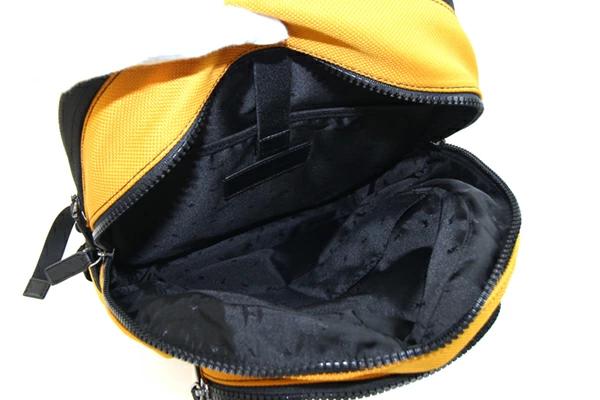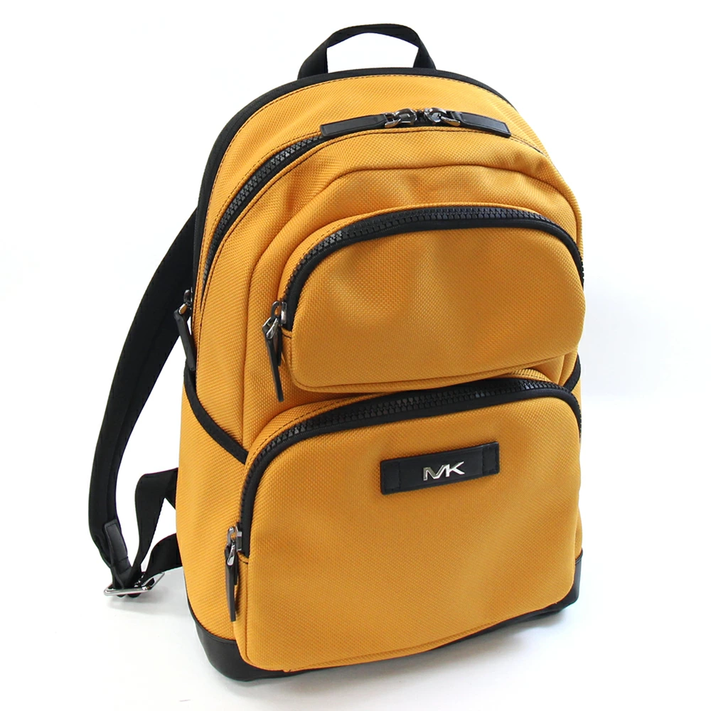 Pre-owned Michael Kors Backpack 37U1LKSC5O in yellow orange and black nylon canvas and leather. This utility backpack features a logo and is perfect for men.