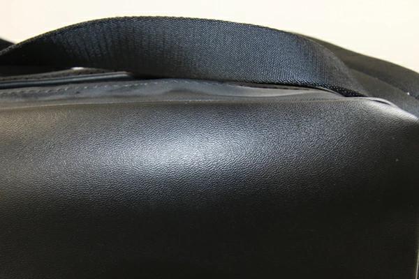 状態外側:レザー部分に小キズ・薄スレあり、底面に多少型崩れあり。ショルダーに薄汚れ、フチに一部毛羽立ちあり。