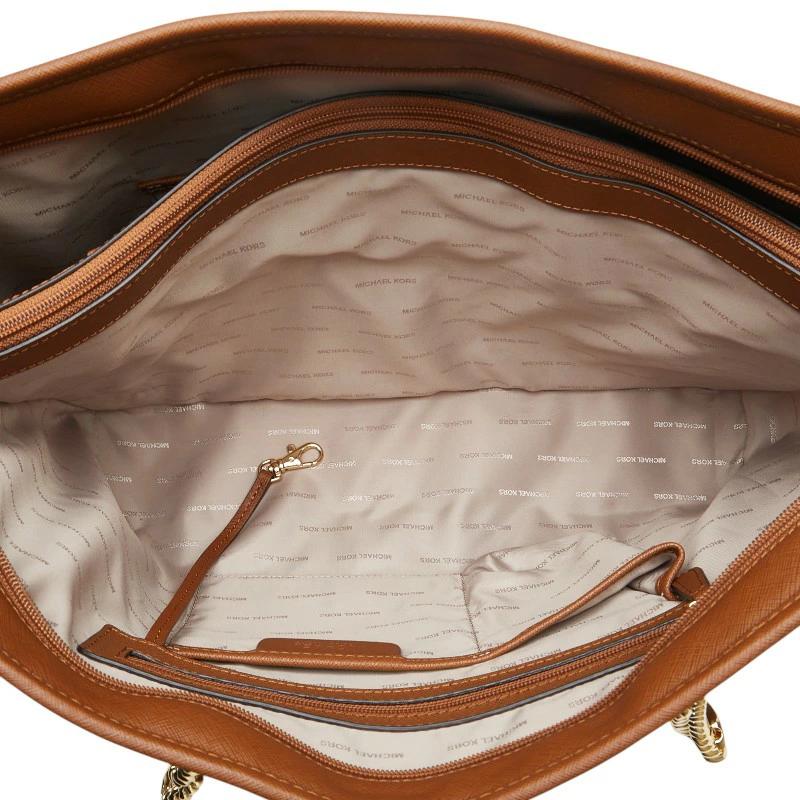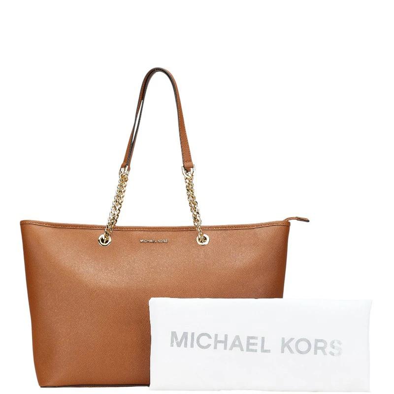 Pre-owned Michael Kors brown leather chain tote bag for women.