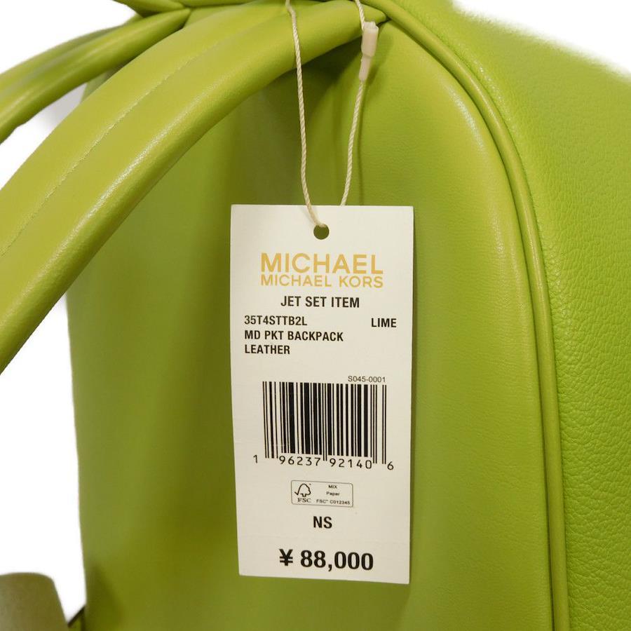 Pre-owned Michael Kors Jet Set Medium Pocket Daypack in Calfskin with Logo in Lime (Product Code: 35T4STTB2L). This elegant, high-quality, sophisticated women's bag is perfect for sophisticated women.