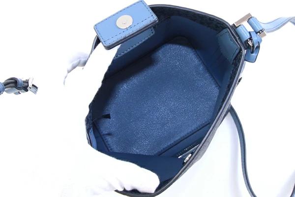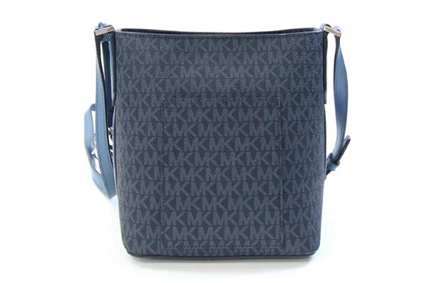 Pre-owned Michael Kors Kimberly Shoulder Bag (35F8SKFM1V) in Navy PVC and Leather. Crossbody Messenger Bag with MK Signature. Women's.