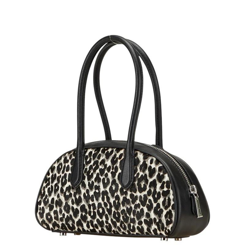 Pre-owned Michael Kors Leopard Print Mini Handbag in Black and White Porcelain Leather.