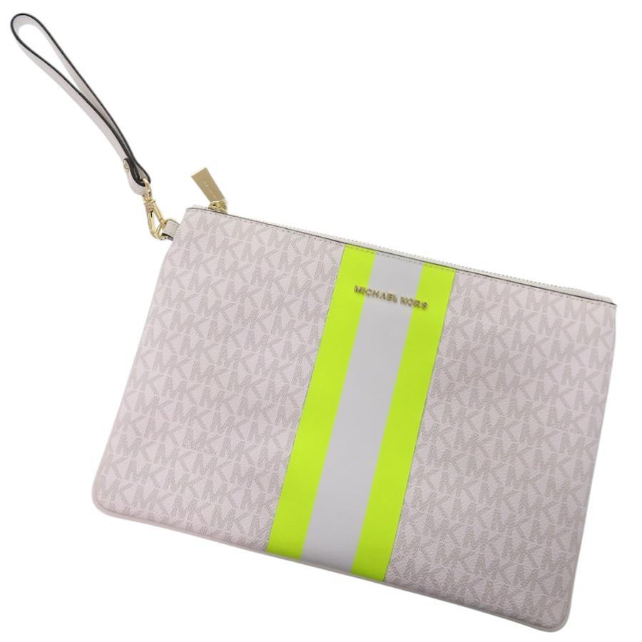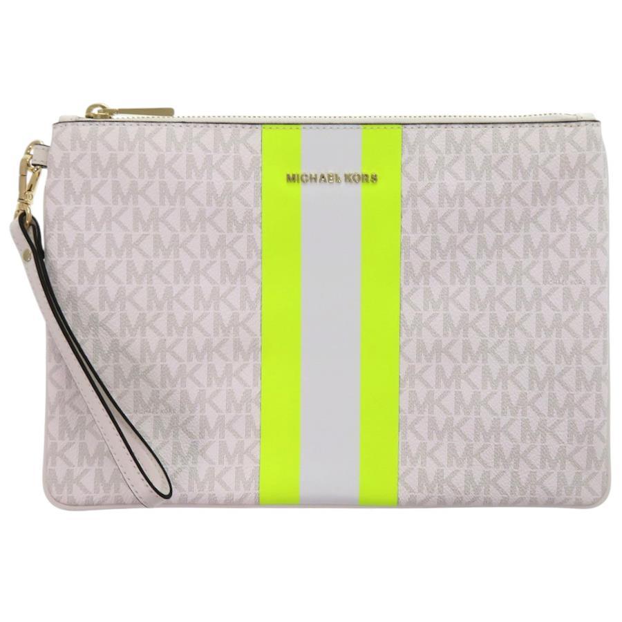 Pre-owned Michael Kors MK Signature Neon Stripe Clutch Bag, 32T9LF9M3B, White PVC, 1926.