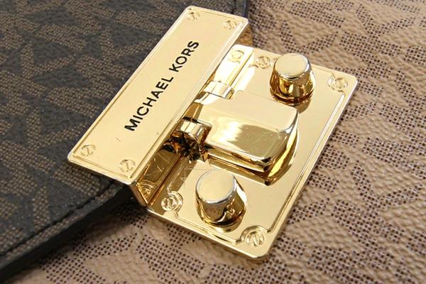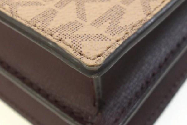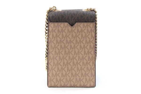 Pre-owned Michael Kors Phone Shoulder Bag (35F0GXOL1L) in Brown PVC and Leather. This square mini bag features a chain and can be worn crossbody.