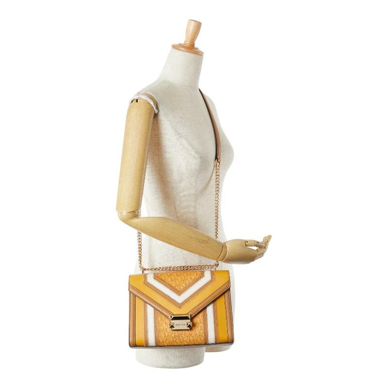 Pre-owned Michael Kors Whitney Colorblock Medium Chain Shoulder Bag in Brown and Beige Leather.