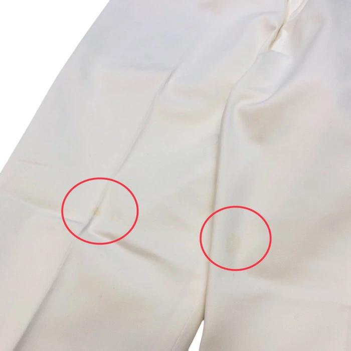 | 商品説明 | 【サイズ】38(M相当) 平置採寸(ウエスト:約37cm・総丈:約79.5cm・股上:約22.5cm・股下:約59cm・わたり幅:約245cm・裾幅:約18cm) 【素材】コットン96%ポリウレタン4% 【季節】春夏 【商品補足説明】※サイズは平置採寸です。両足の前面に1.5cm以下のシミあり(右2か所・左1か所)。樟脳(ナフタリン)のような臭いあり。 |