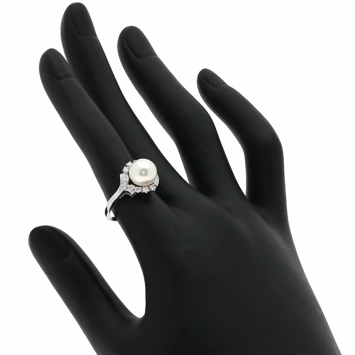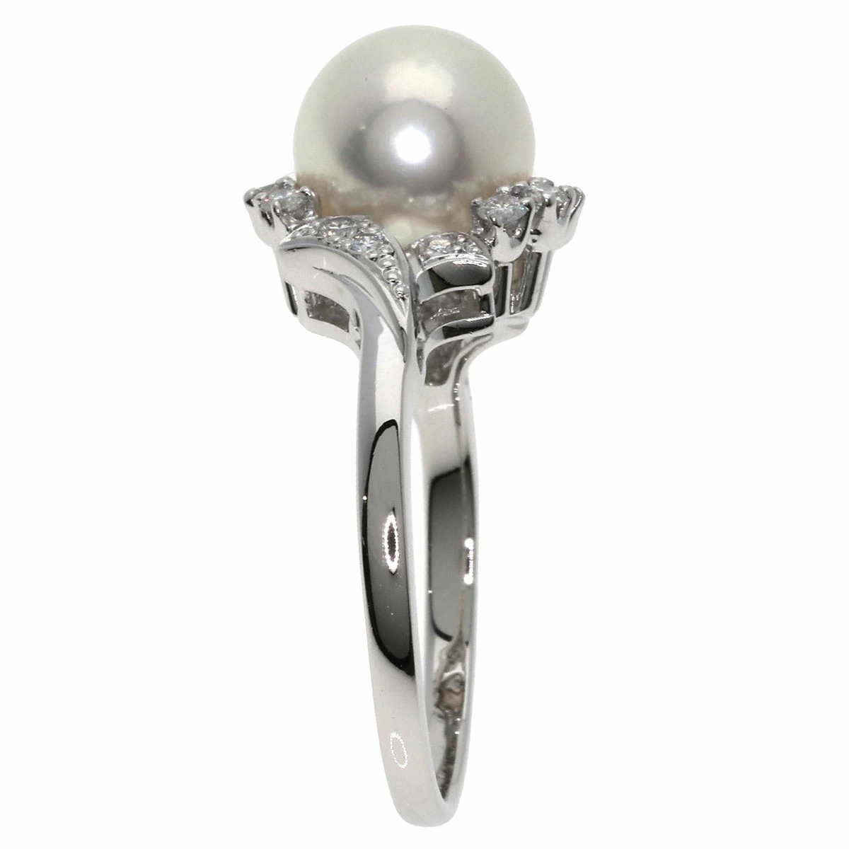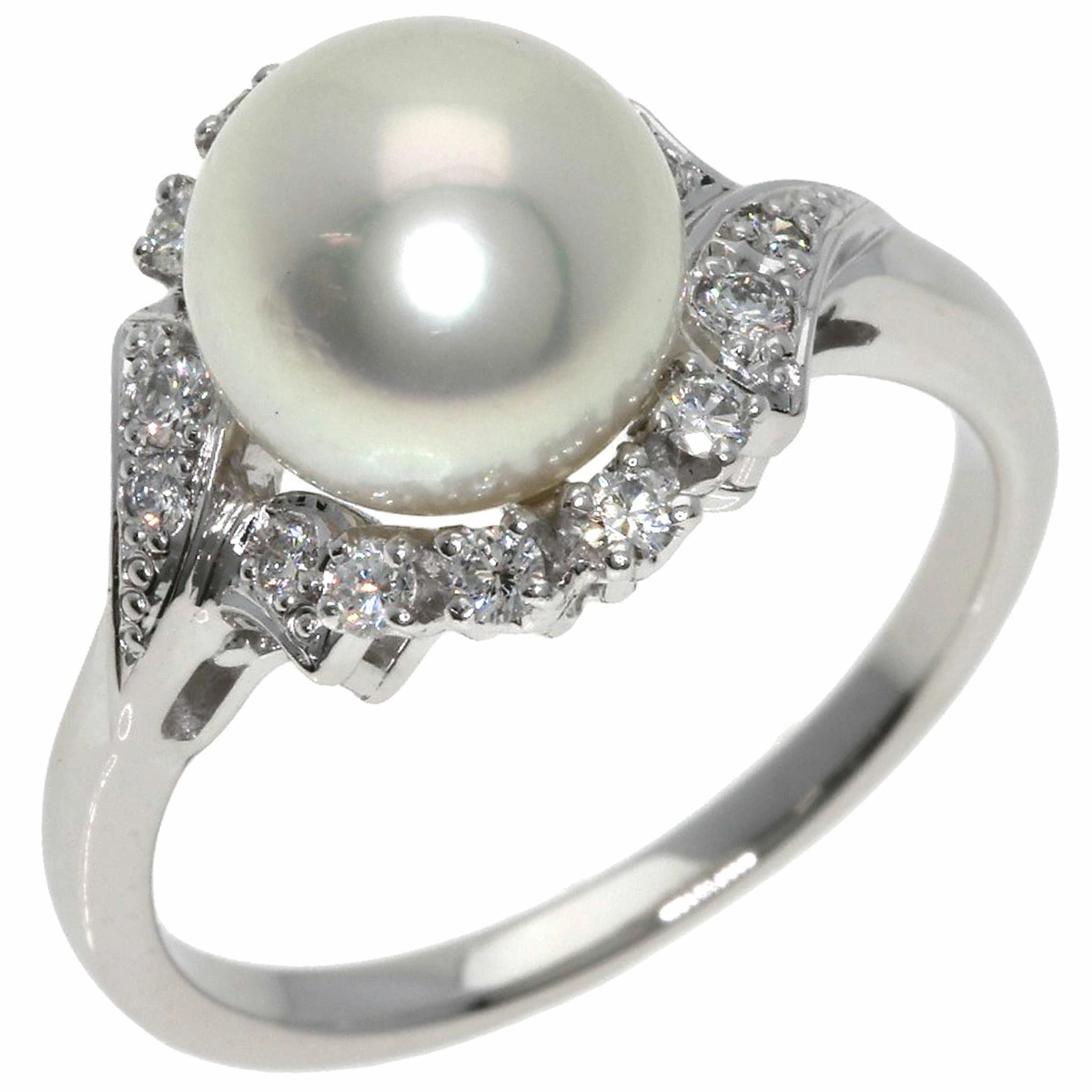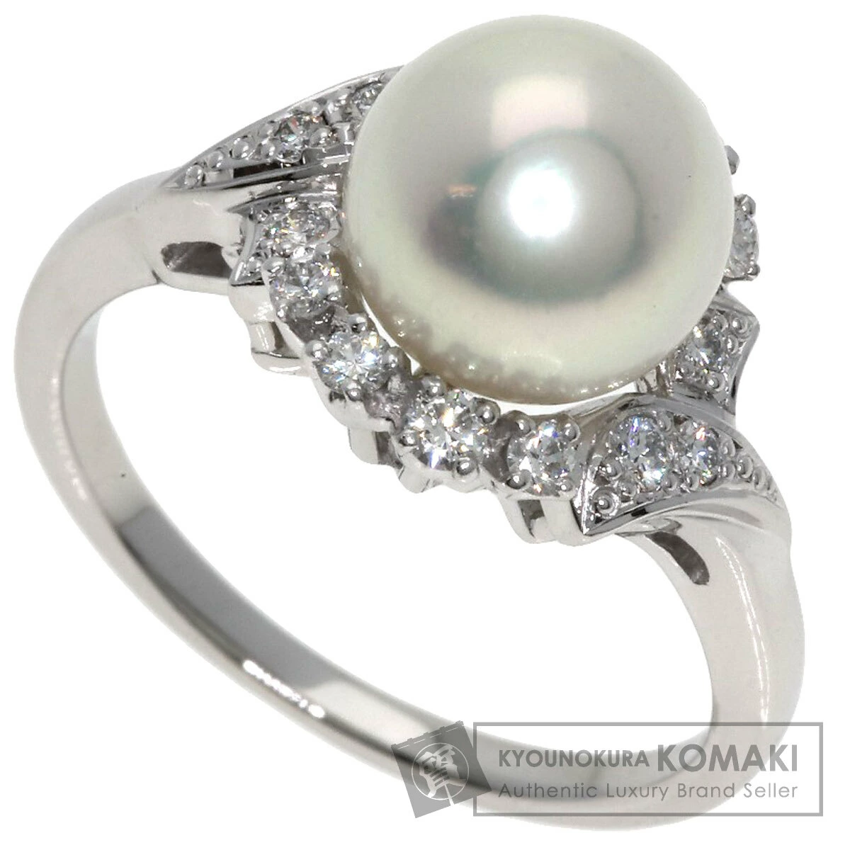 Pre-owned Mikimoto Akoya Pearl and Diamond Ring in Platinum PT950 for Women.