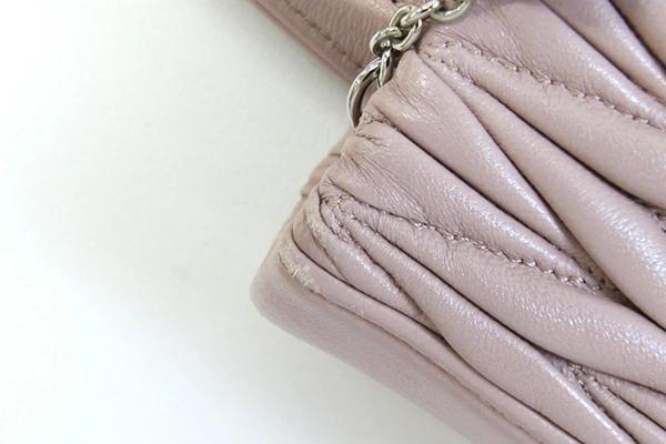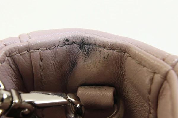 | 状態 | 外側:多少スレ・薄汚れ感あり、フチ周りや上部にスレ・すり減り・色落ちあり。 内側:スレ、薄汚れ、レザーに小キズあり。入口両サイドに黒ずみ汚れあり。 金具:小キズあり。 |