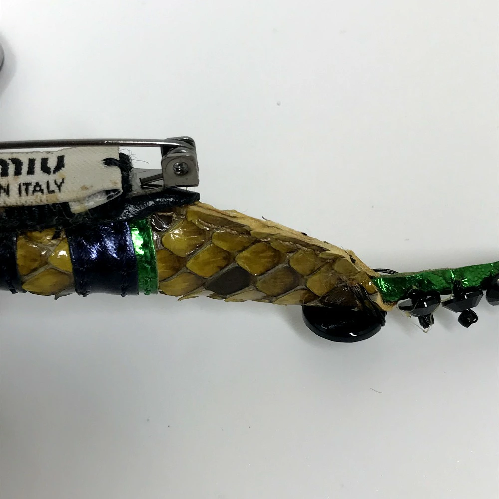 | 商品説明 | 山羊革、ヘビ皮で作られたトンボのブローチです。ミュウミュウならではの細部までこだわった作りで、眺めているだけでも楽しめそうなアイテムです。トンボは縁起が良いと言われておりますので、是非この機会に試してみませんか。 |