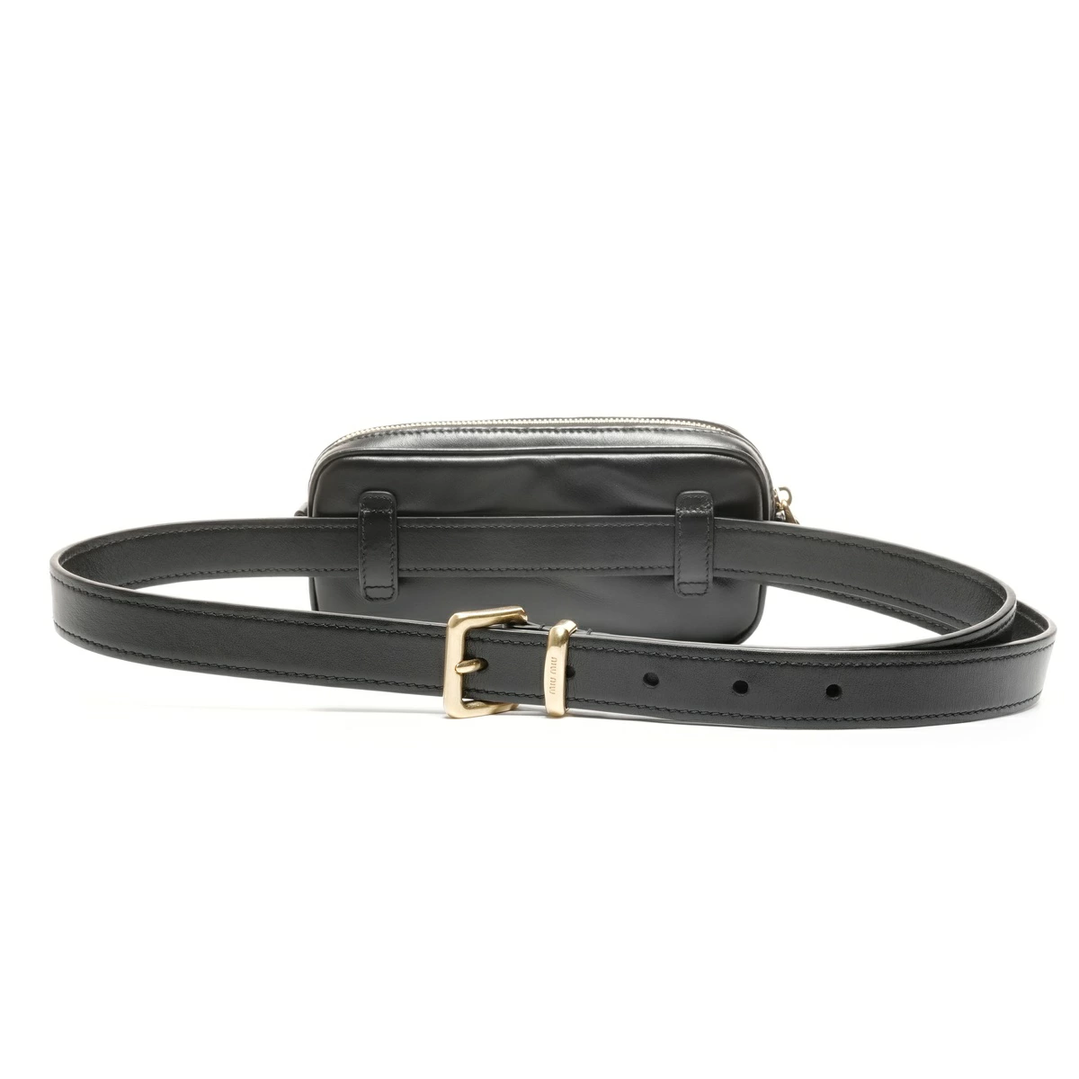 Pre-owned Miu Miu Leather Logo Belt Waist Bag, Black, WS24948