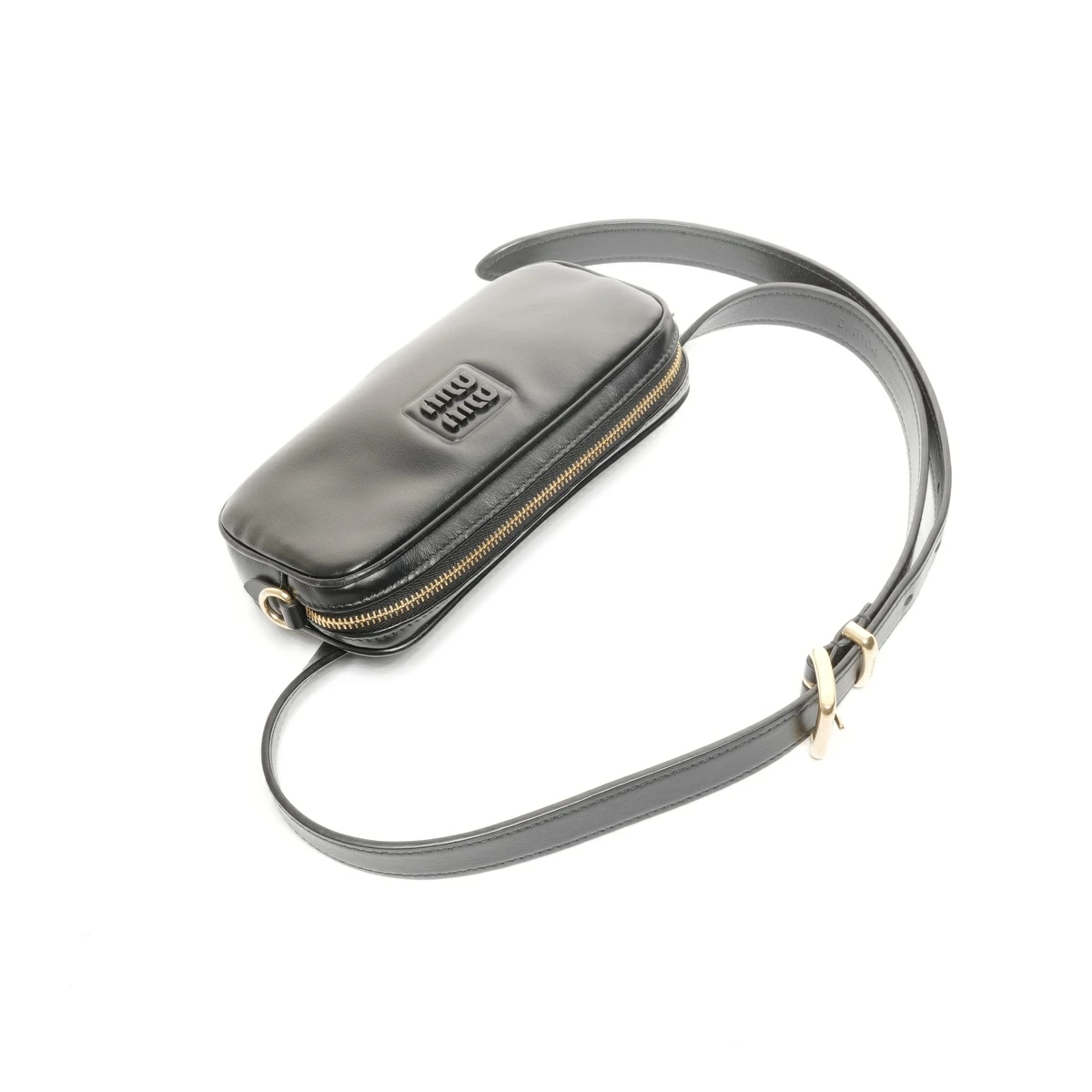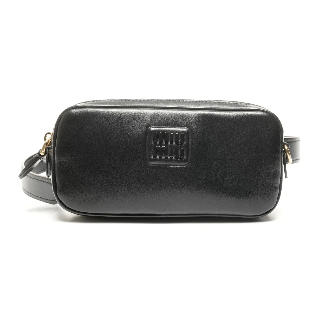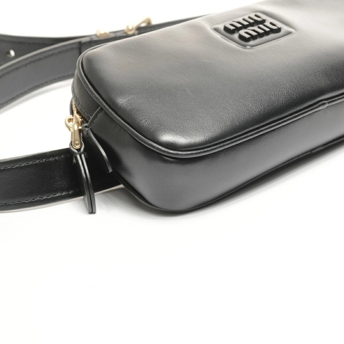 ミュウ ミュウ Miu Miu レザー ロゴ ベルト ウエストバッグ ブラック WS24948 【中古】