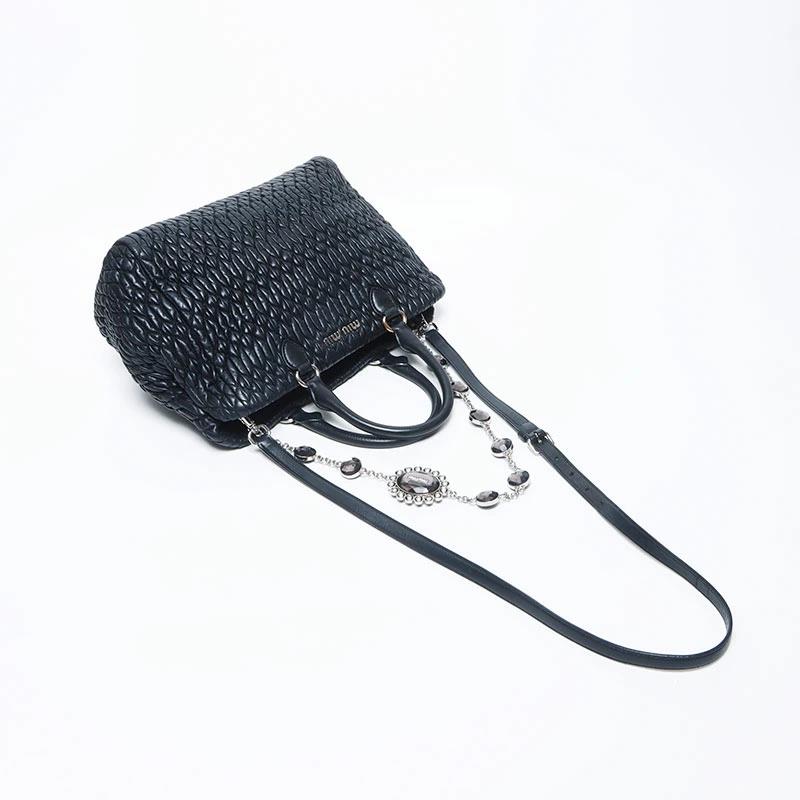 新品~未使用品 新品同様品または試着程度の使用感があります。 使用感の少ない状態の良い中古品になります。 使用感があるものの傷や汚れが少なく、比較的状態の良い商品。 傷や汚れがあり、使用感のある商品。 Miu Miu/ミュウ ミュウ トートバッグ ブラック モニターの発色によって実際の物と色が異なる場合がございます。