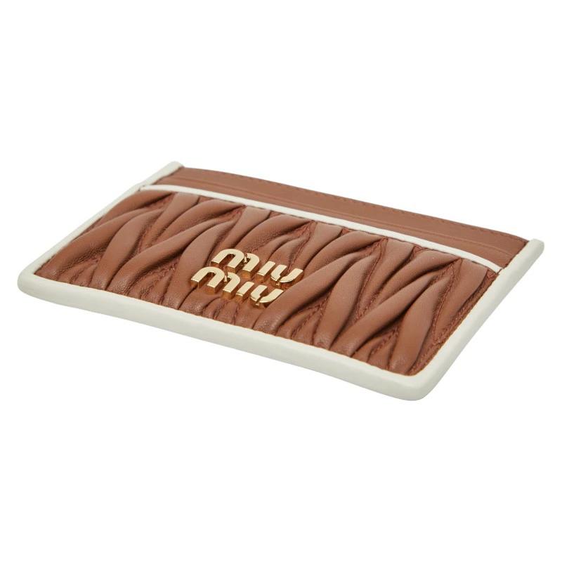 Pre-owned Miu Miu Matelasse card and pass case in brown and white leather. Women's.