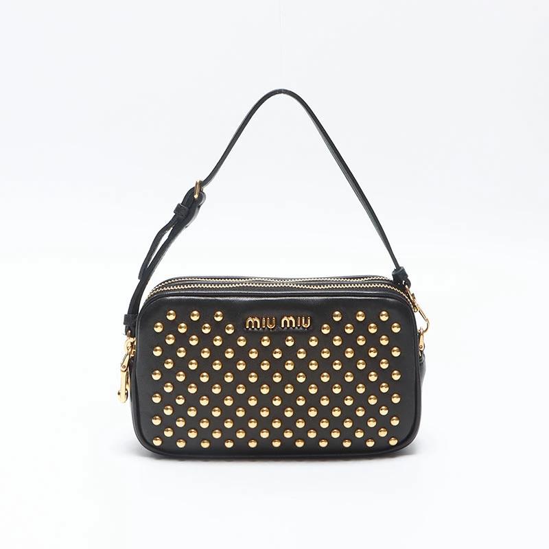 新品~未使用品 新品同様品または試着程度の使用感があります。 使用感の少ない状態の良い中古品になります。 使用感があるものの傷や汚れが少なく、比較的状態の良い商品。 傷や汚れがあり、使用感のある商品。 Miu Miu/ミュウ ミュウ ハンドバッグ ブラック モニターの発色によって実際の物と色が異なる場合がございます。