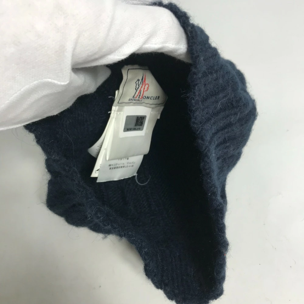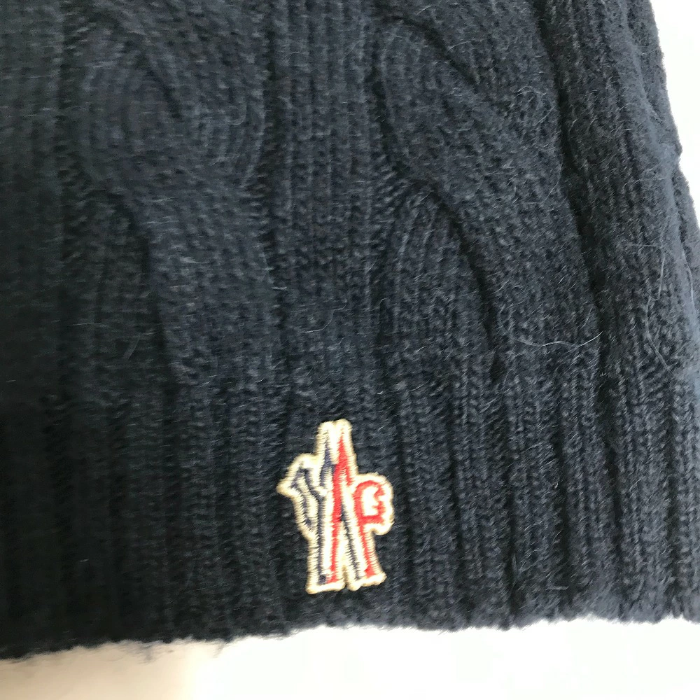 Pre-owned MONCLER pom-pom logo beanie hat, knit cap, wool/acetate knit cap, women's, navy.