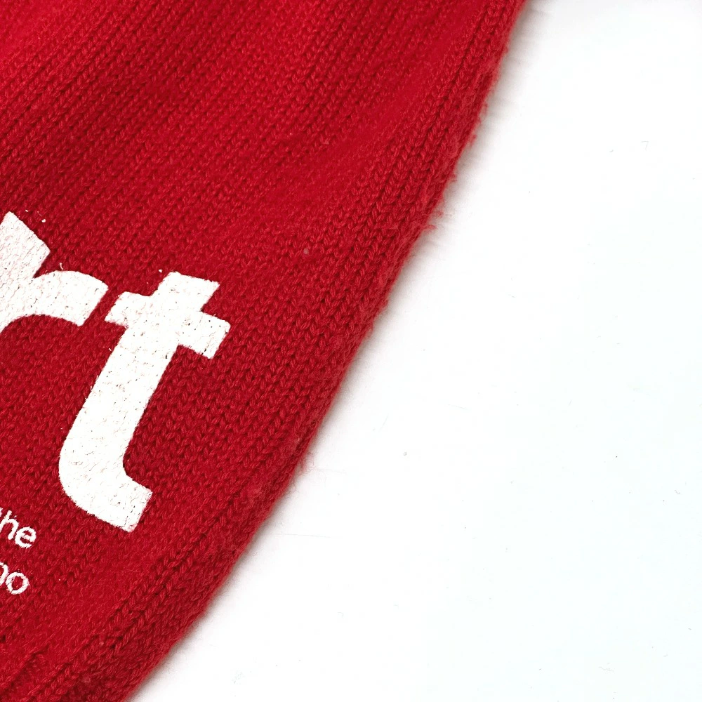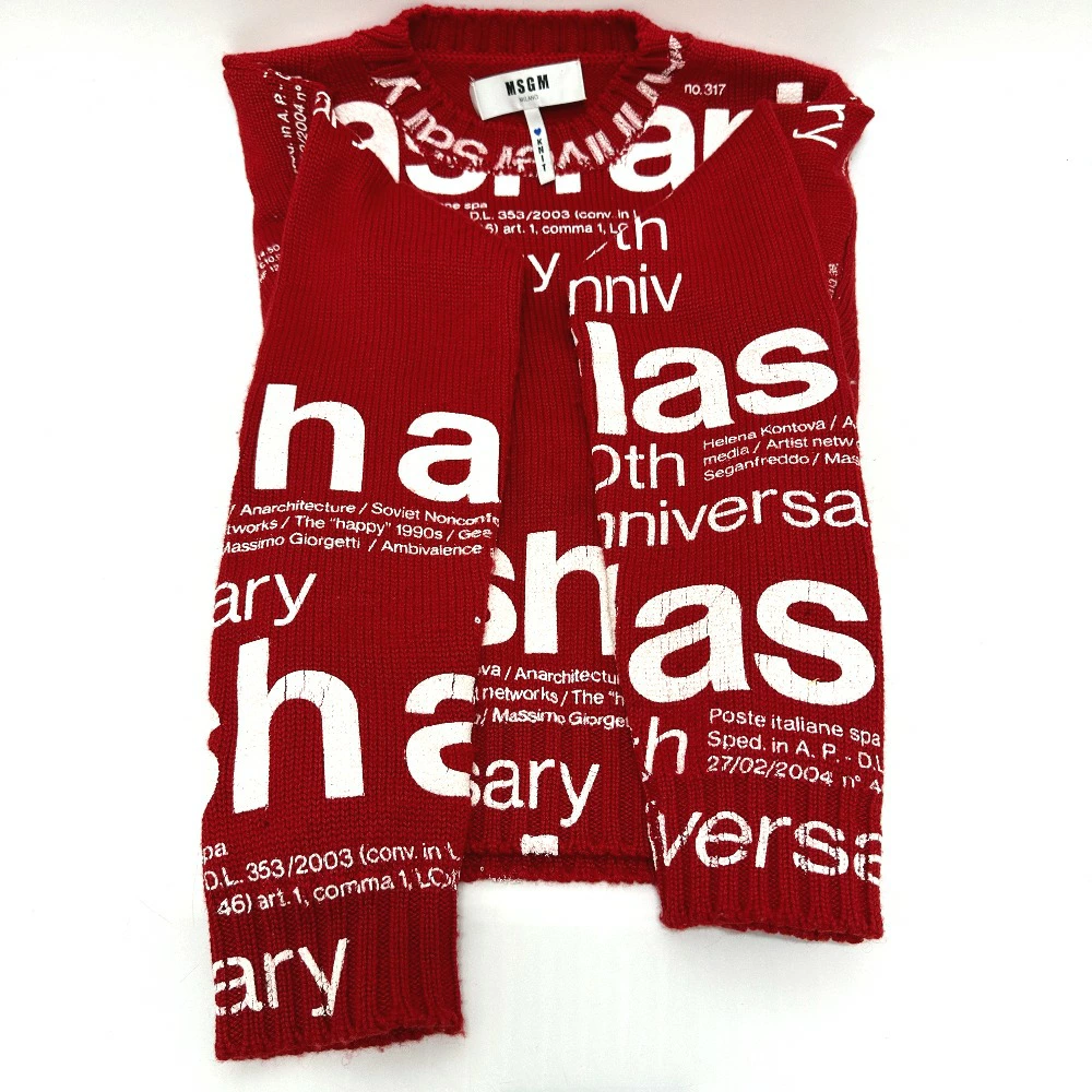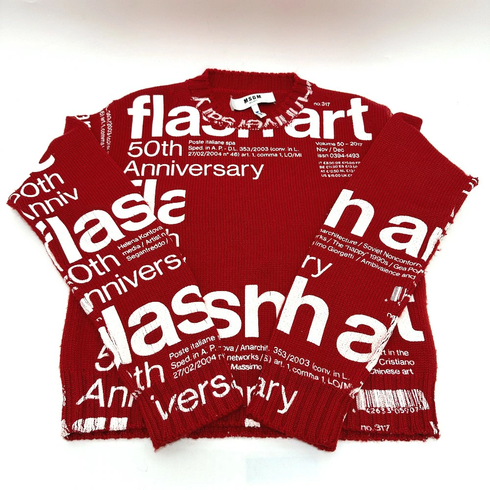 Pre-owned MSGM all-over print long-sleeved round-neck wool knit sweater in red.