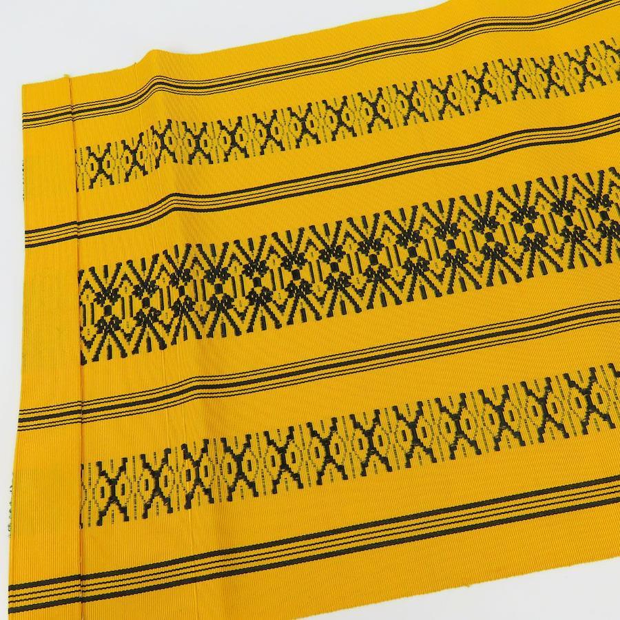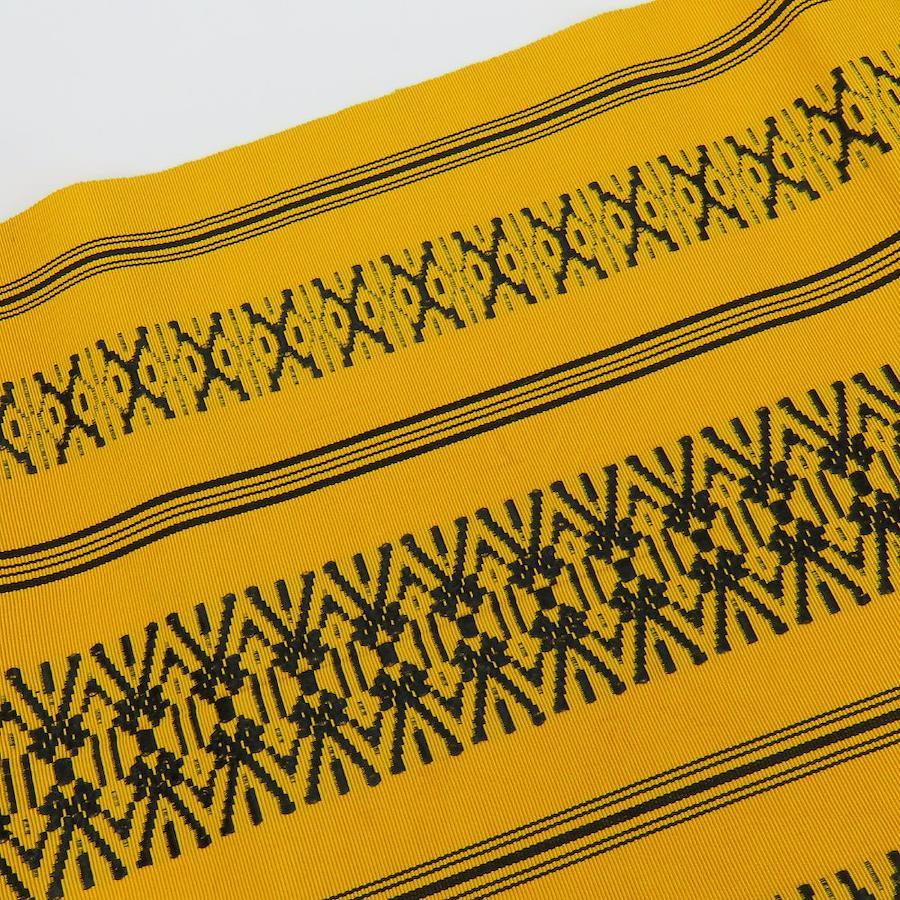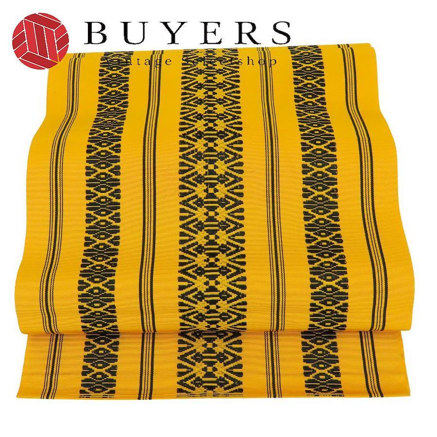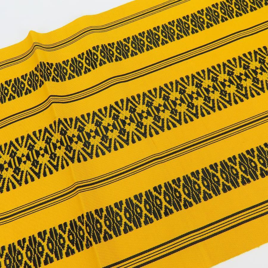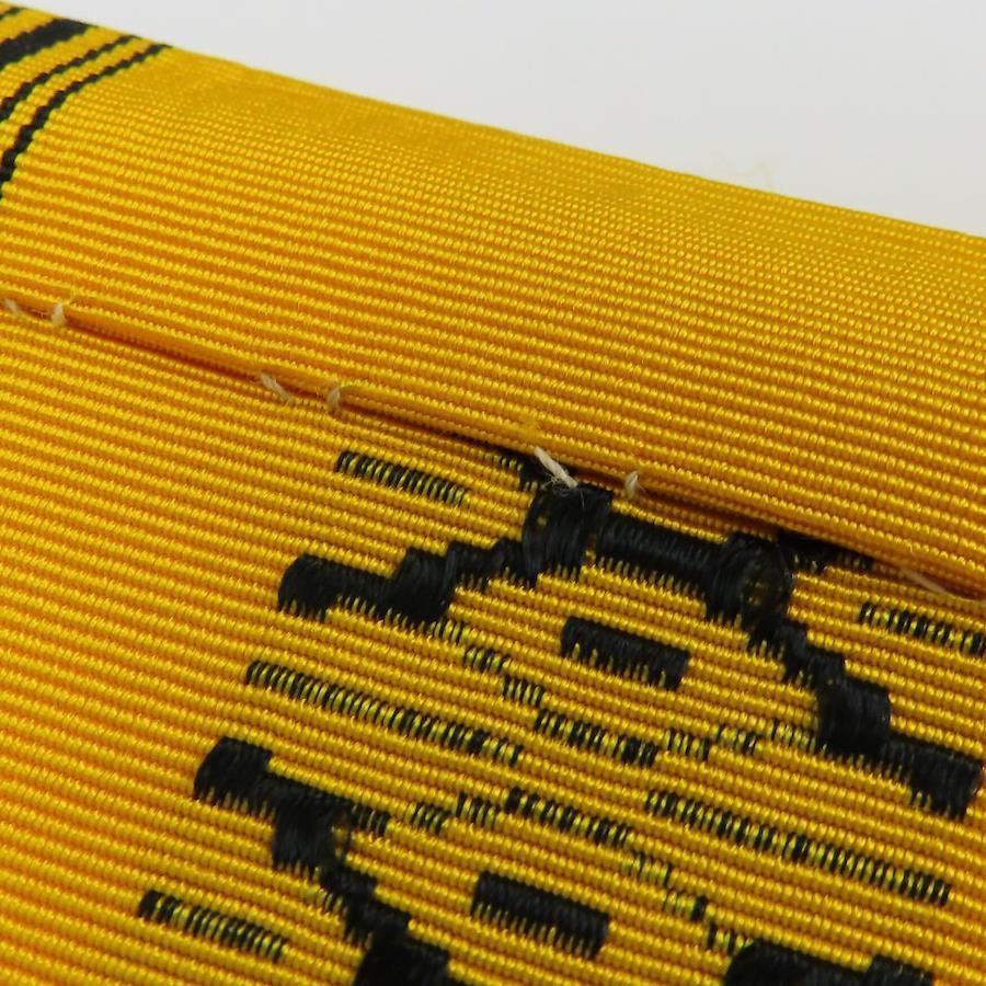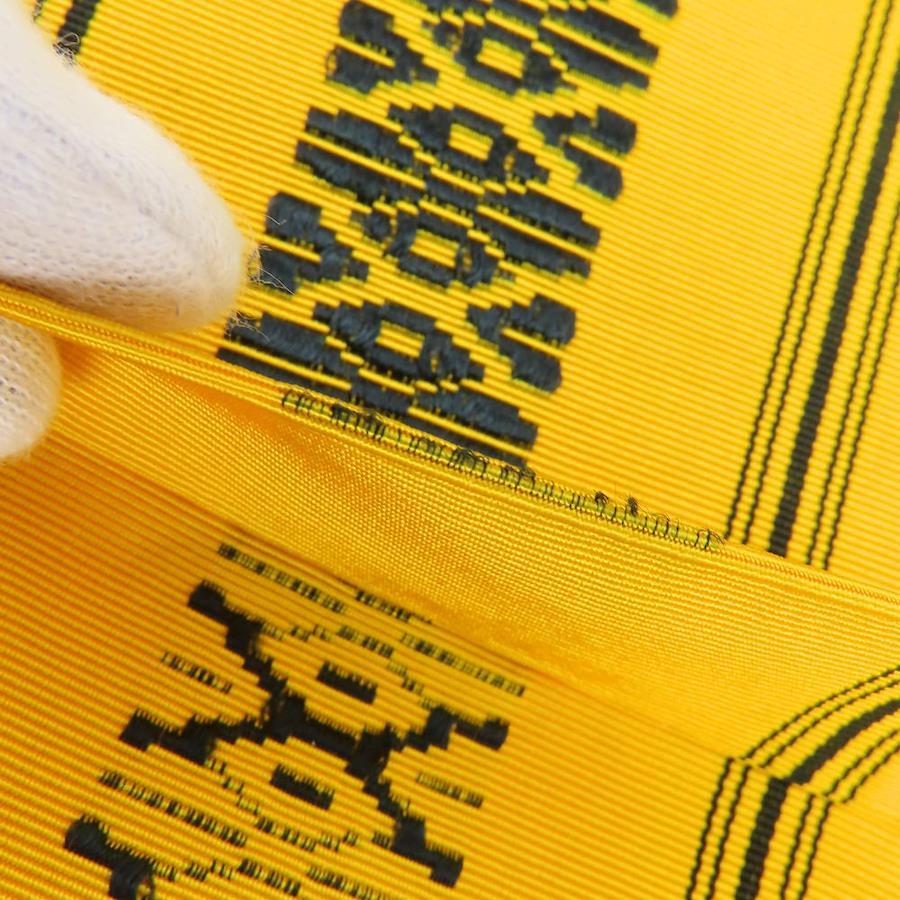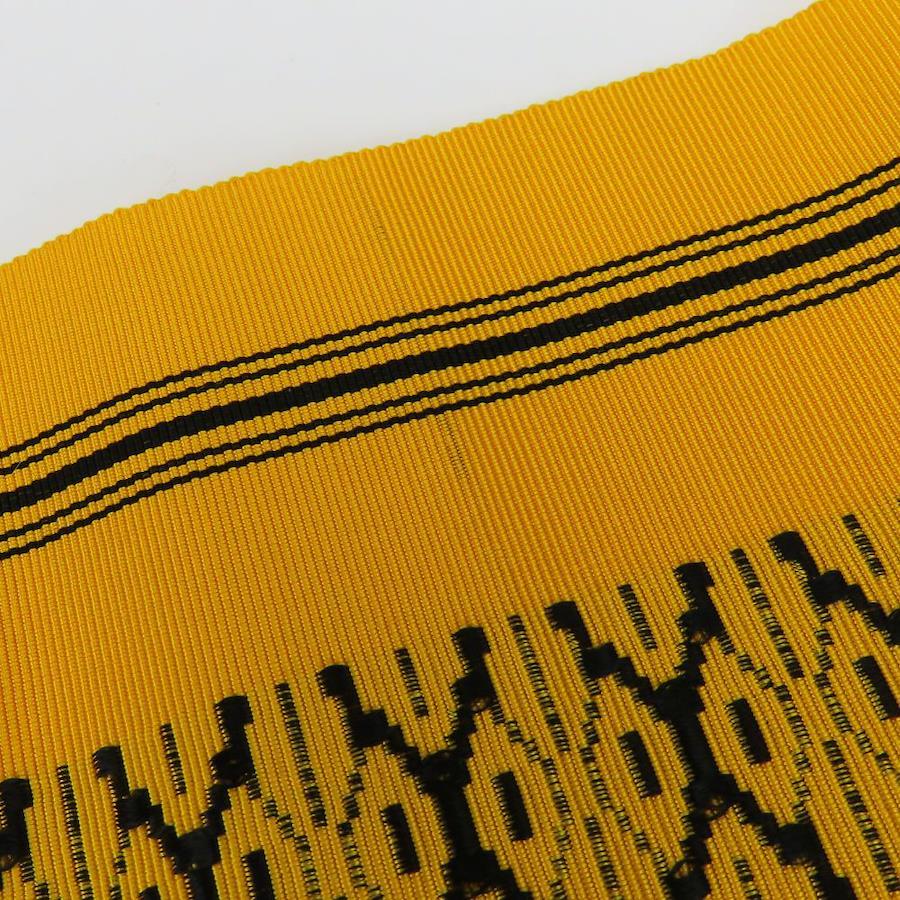 | 品名 | 【中古】 名古屋帯 八寸 正絹(金銀糸除く) イエロー系 ブラック 献上柄 モダン お洒落 レディース 女性 |