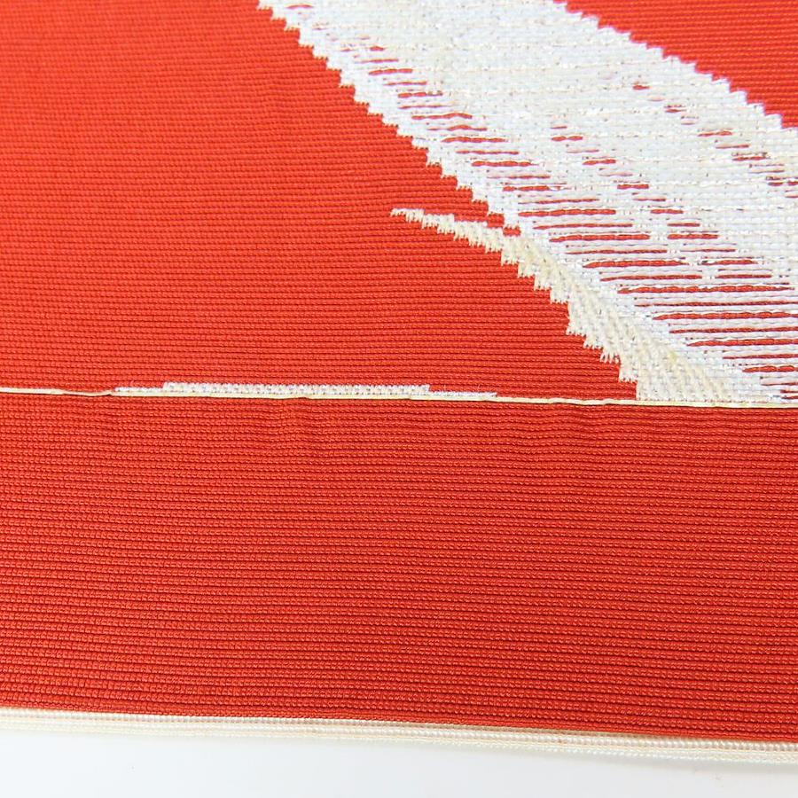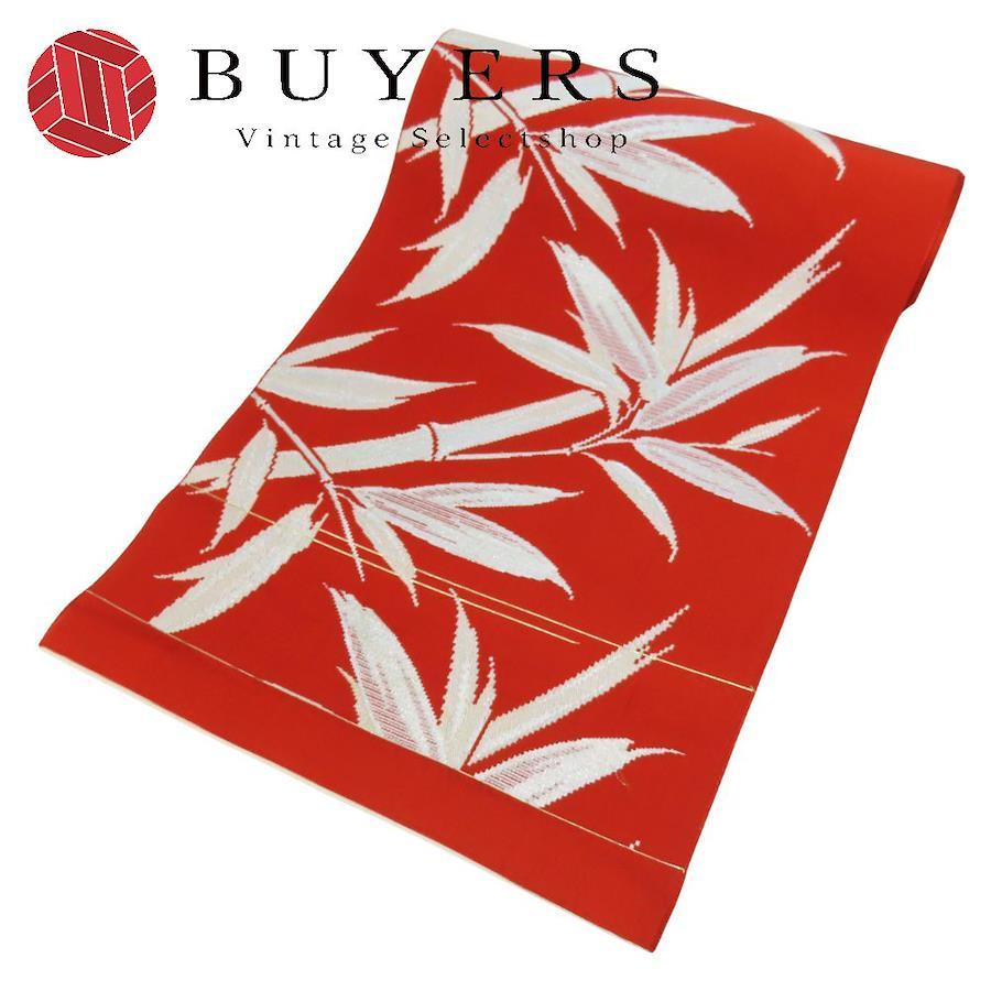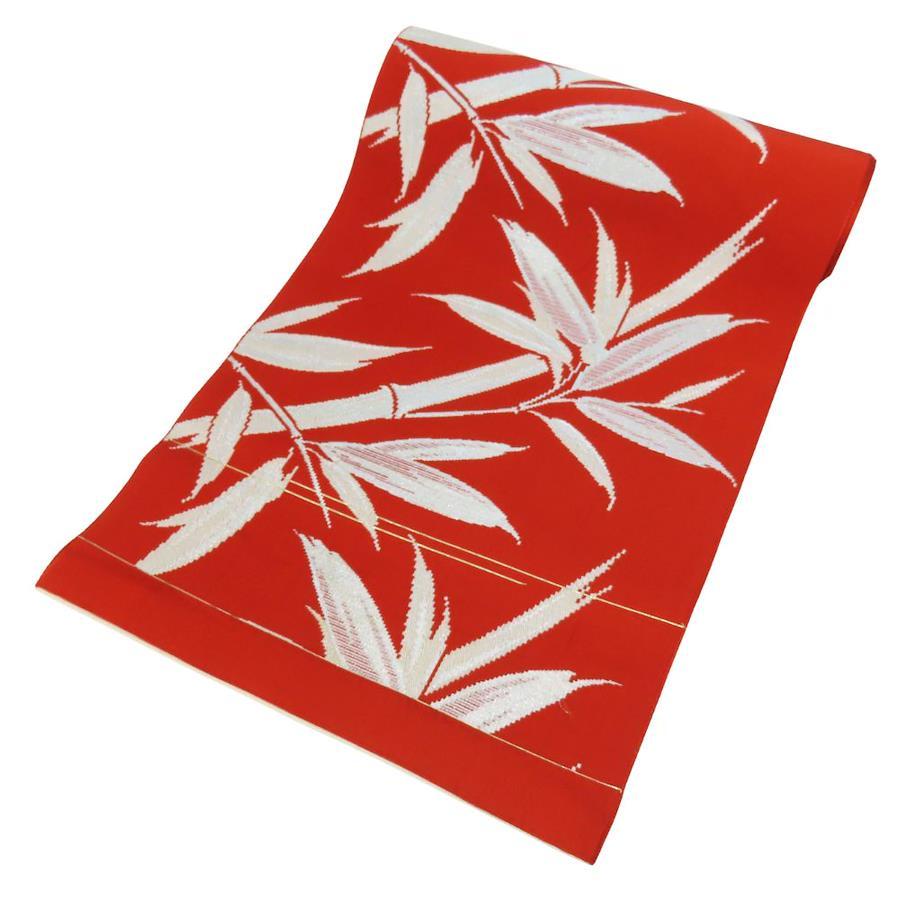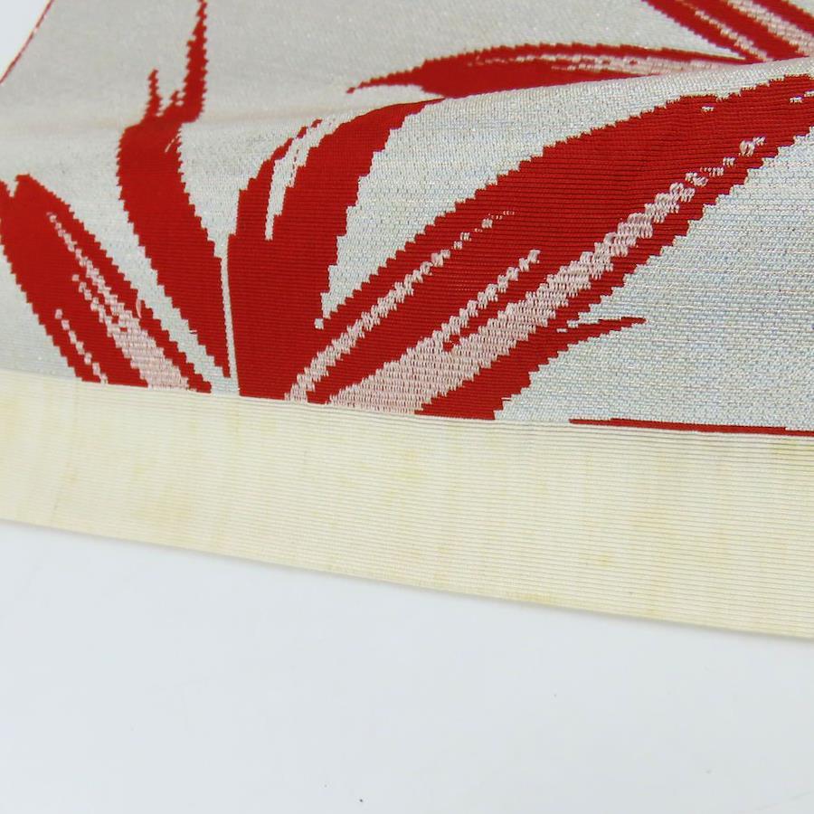 | 品名 | 【中古】 名古屋帯 八寸 正絹 レッド シルバー パステルブルー 竹柄 モダン レディース 女性 |
