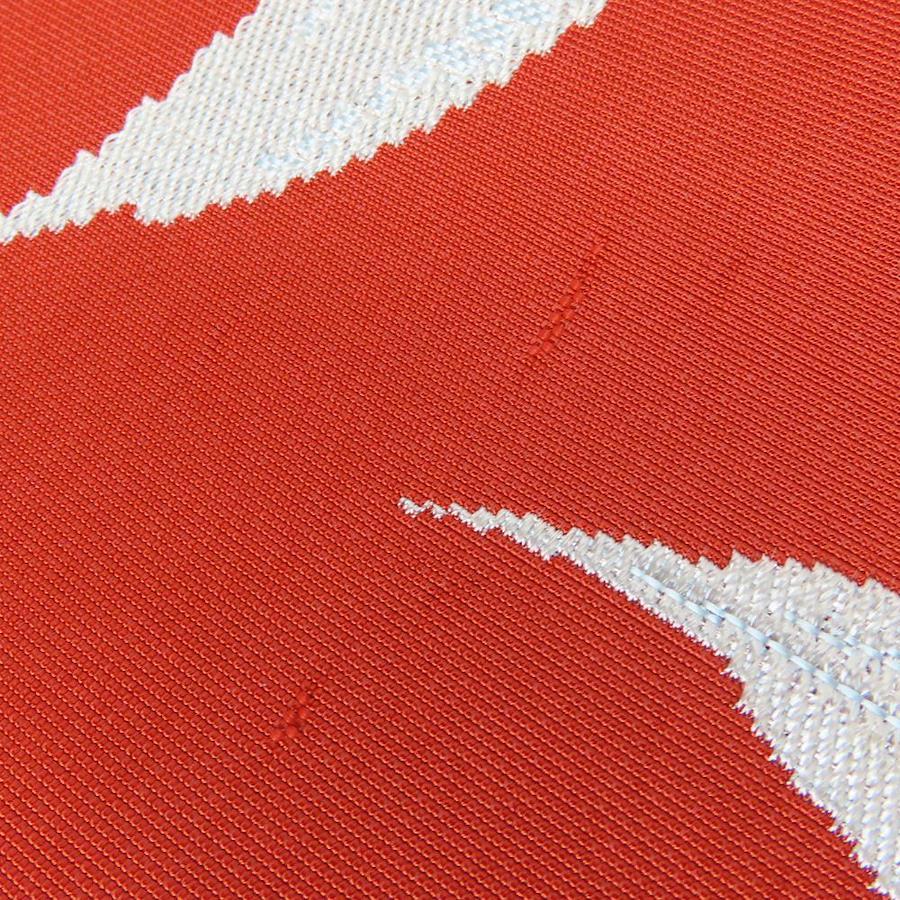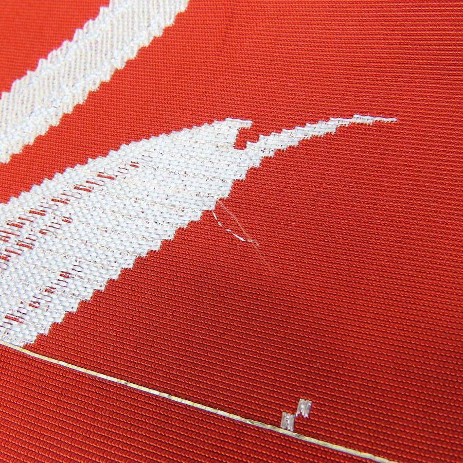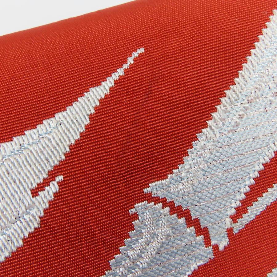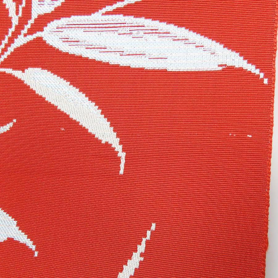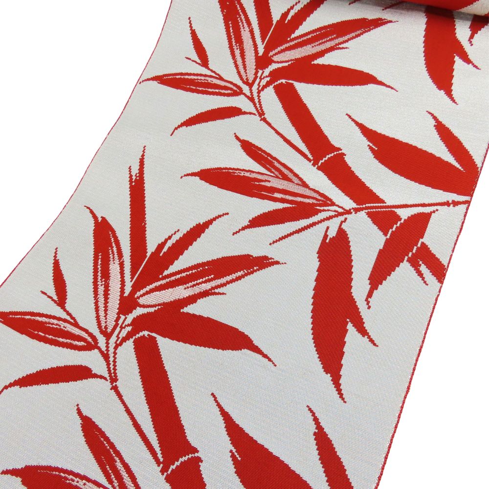 | 品名 | 【中古】 名古屋帯 八寸 正絹 レッド シルバー パステルブルー 竹柄 モダン レディース 女性 |