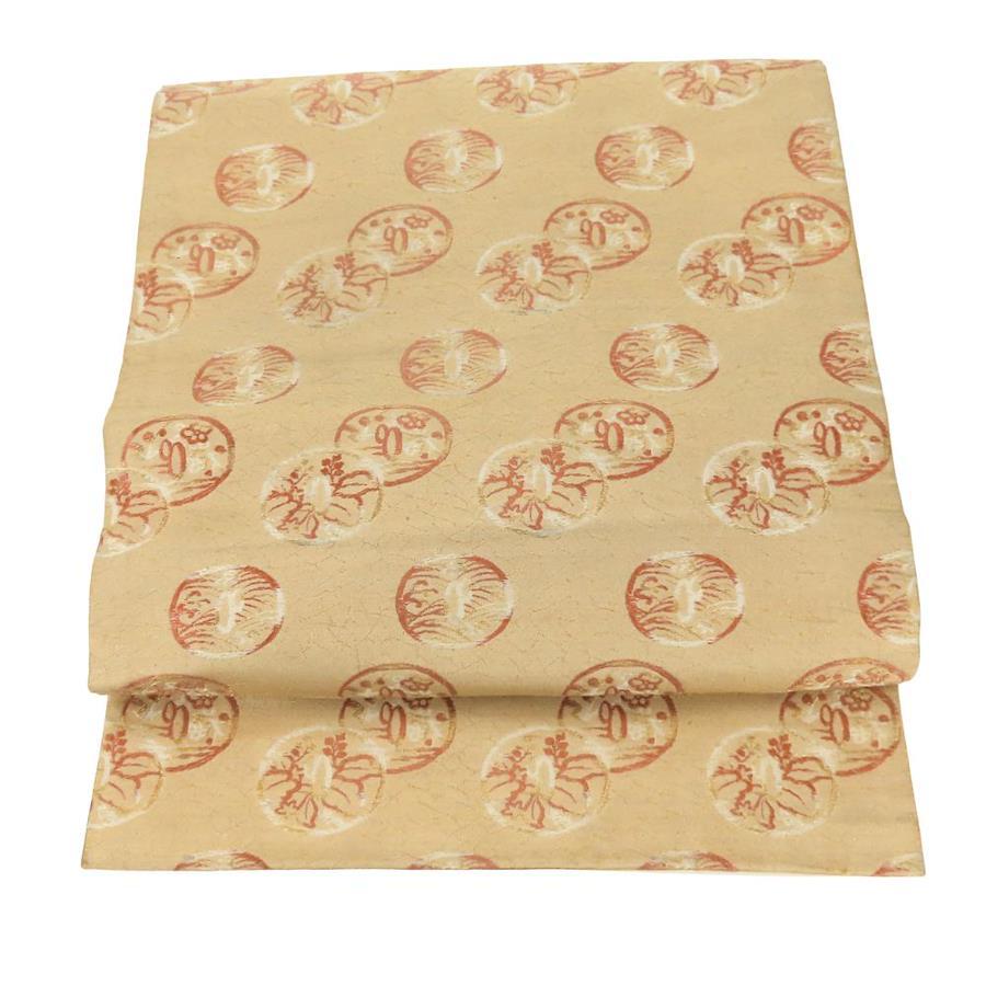 [Pre-owned] Nagoya Obi, 9 inches, Pure Silk (excluding gold and silver threads), Gold and Pink, Nagoya Style, Stylish Obi, Modern, Kimono, Women's